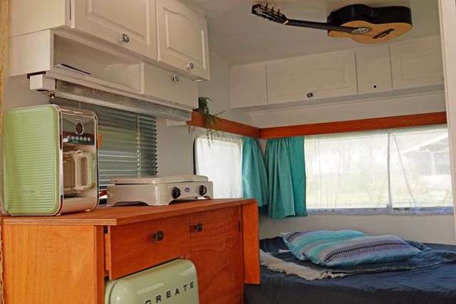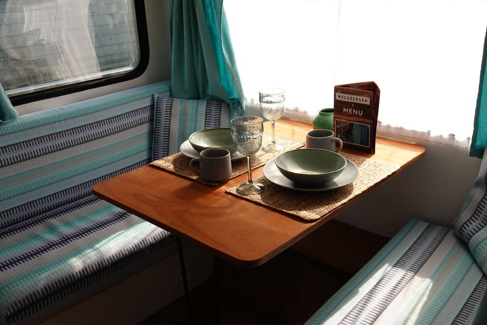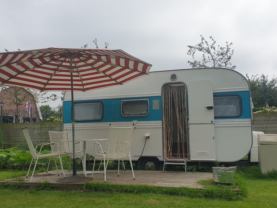 Would you like to go camping in retro style? Then this completely pimped caravan in vintage style is for you. The caravan has a comfortable double bed (1.40x2.00m), cooking facilities, sufficient storage space and a cozy seat. Outside, on your own terrace you can enjoy the sun! The caravan is on the camping field of the small-scale cozy campsite. In short: an ideal location to enjoy the outdoors.