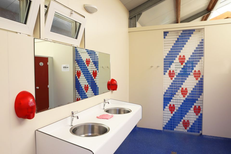The campsite is located on the water in the beautiful lake area of Southwest Friesland and has many facilities. In addition to the possibility to reserve a place for your tent, caravan or motorhome, it is also an option to choose the group accommodation, the log cabins or glamping tent. The group accommodation is suitable for groups up to forty people, but can also be booked for smaller groups. The log cabins and glamping tent are suitable for a group of up to five people. There is also a nice spacious toilet block with toilets, 6 showers, a launderette and a baby room. The 6 showers are equipped with automatic showers and work on € 0.50 cent coins. A disabled room is available for our guests who have difficulty walking. There is an opportunity to do your dishes on the side of the toilet block.