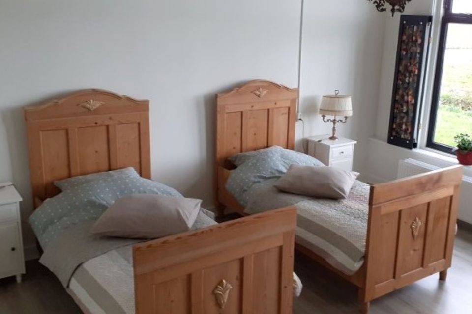 The apartment is located in the middle of the nature of It Heidenskip. All around you have a wide view over the countryside and there is a swimming pond near the apartment. There is a cozy living room with a sitting and dining area and a beautiful view. Adjacent to the living room is the kitchen with a gas stove and oven. There are two bedrooms in the apartment. The first bedroom has a comfortable double bed (180x200) and the second bedroom has two single beds (90x200). The bathroom and toilet are separate from each other. The bathroom has a shower and sink. Adjacent to the apartment you have access to a terrace with garden furniture.