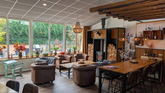 The 11Stedenhuis has five rooms. During their stay, guests can use the communal living room, Trochrinner: a charming space with a fireplace, a large round seating area, and a cozy tiered table. It's an ideal place to gather, play a game, or simply relax.