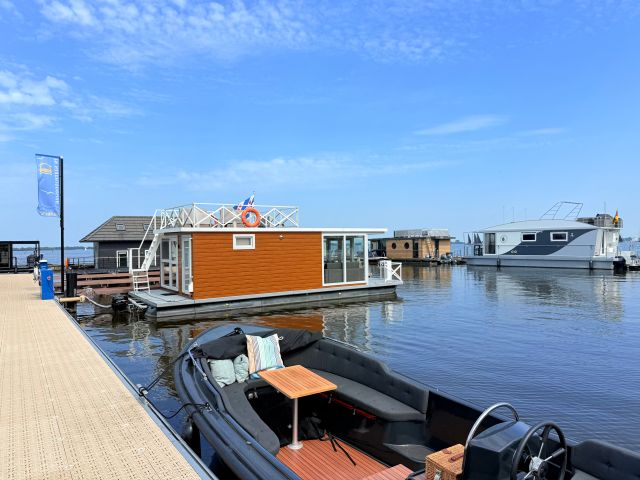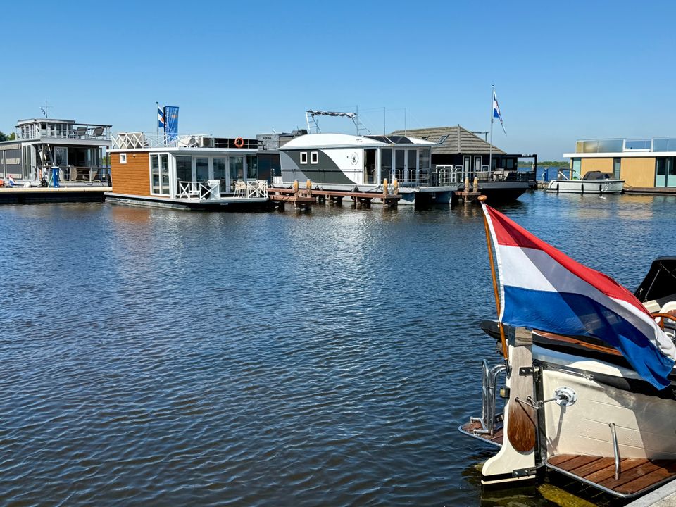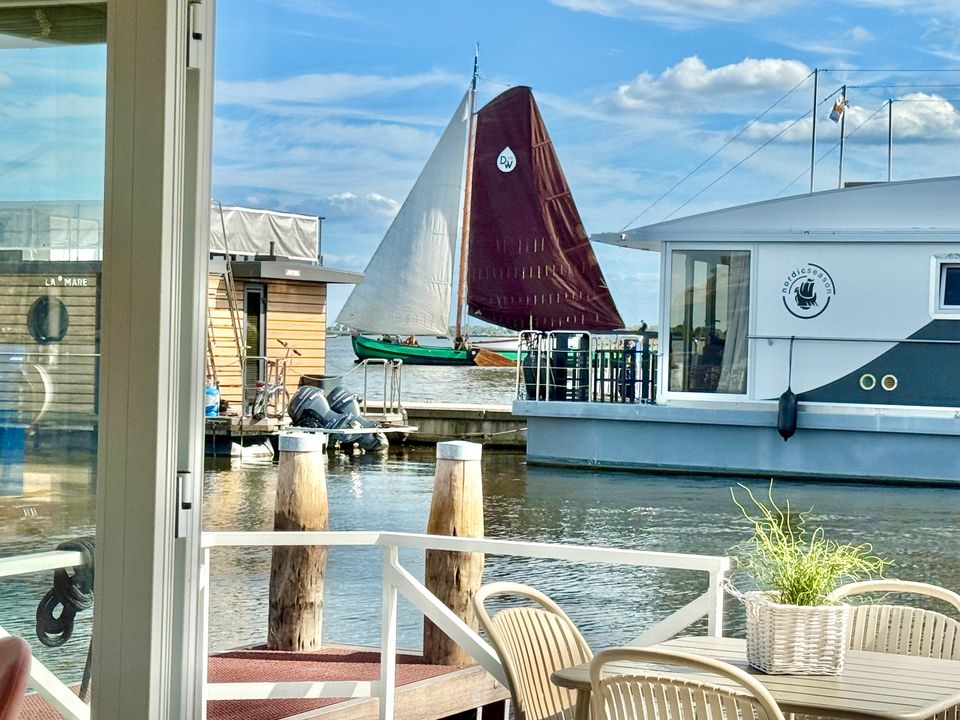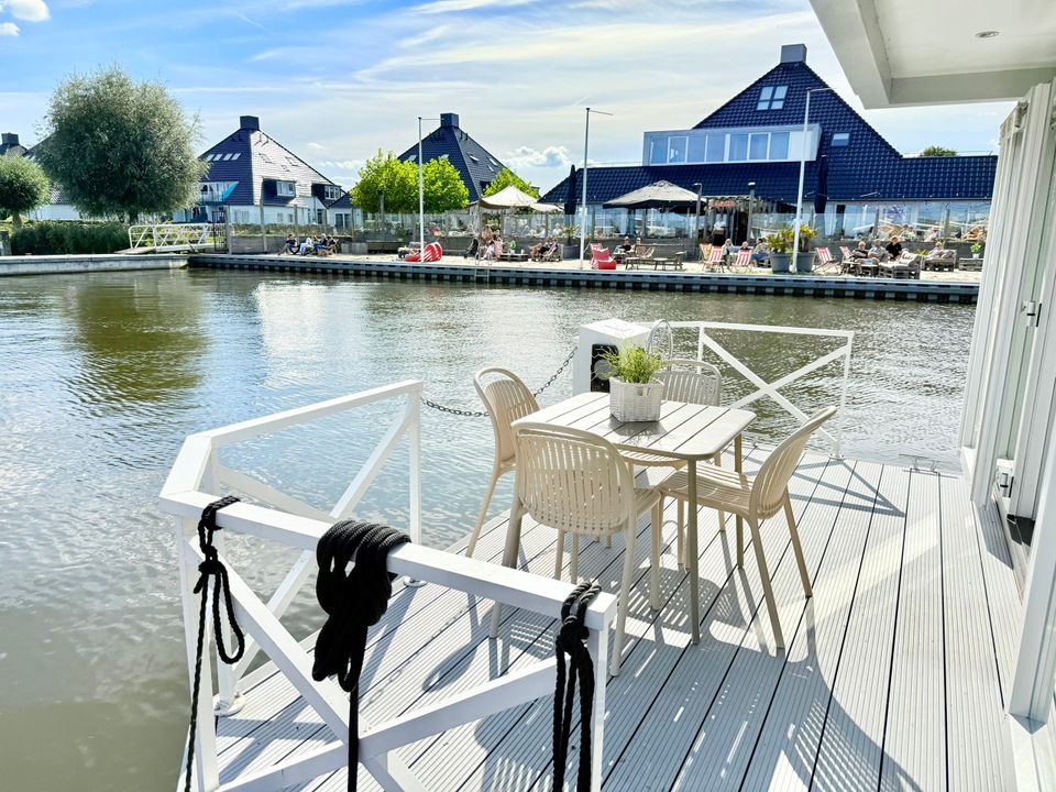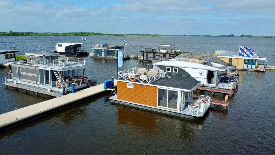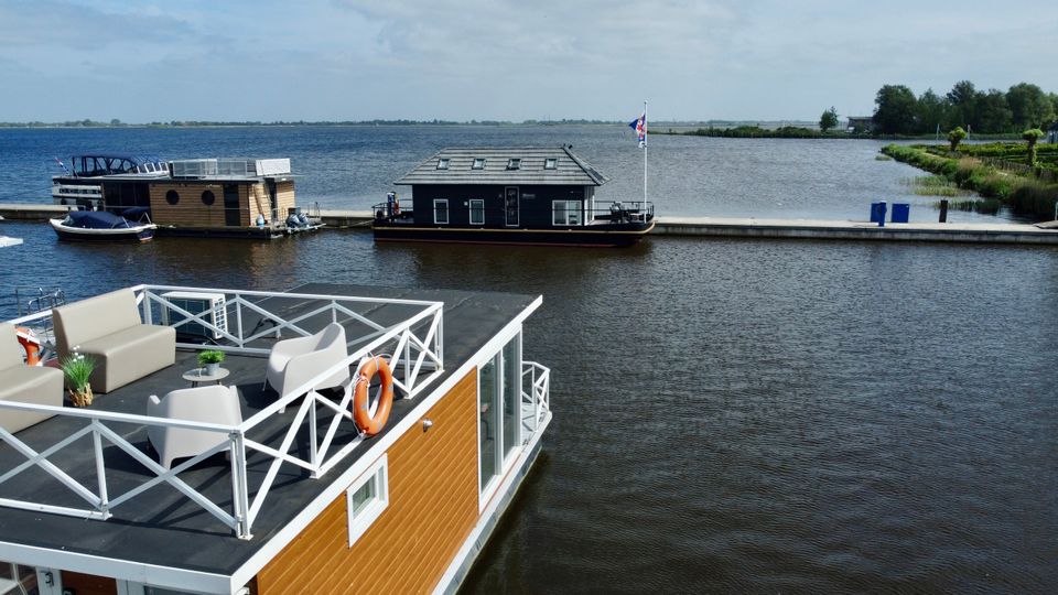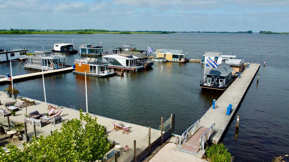 These Houseboats (houseboats) are moored on open water, in Huisboothaven Waterrijck Sneekermeer (near Beachclub Sneek). Only a 10-minute drive from the famous city of Snits, or Sneek! You can enjoy a truly phenomenal unobstructed view of one of the most famous Frisian lakes. Situated on beautiful cycling routes. At the nearby RCN holiday park de Potten you can rent bicycles, among other things. Do you want to rent a boat yourself, or do you not feel like cooking on board? Then you can enjoy a drink or dinner in the Huisboothaven at the new Beachclub Sneek pavilion. Do you want more adventure? Then visit the famous starting island (via the ferry at 5 minutes walking distance) or go to Strand Sneek. Pure fun for young and old can be found within a few minutes walking distance. Be surprised by the Waterskibaan, cozy catering, the newest Aquapark & more.