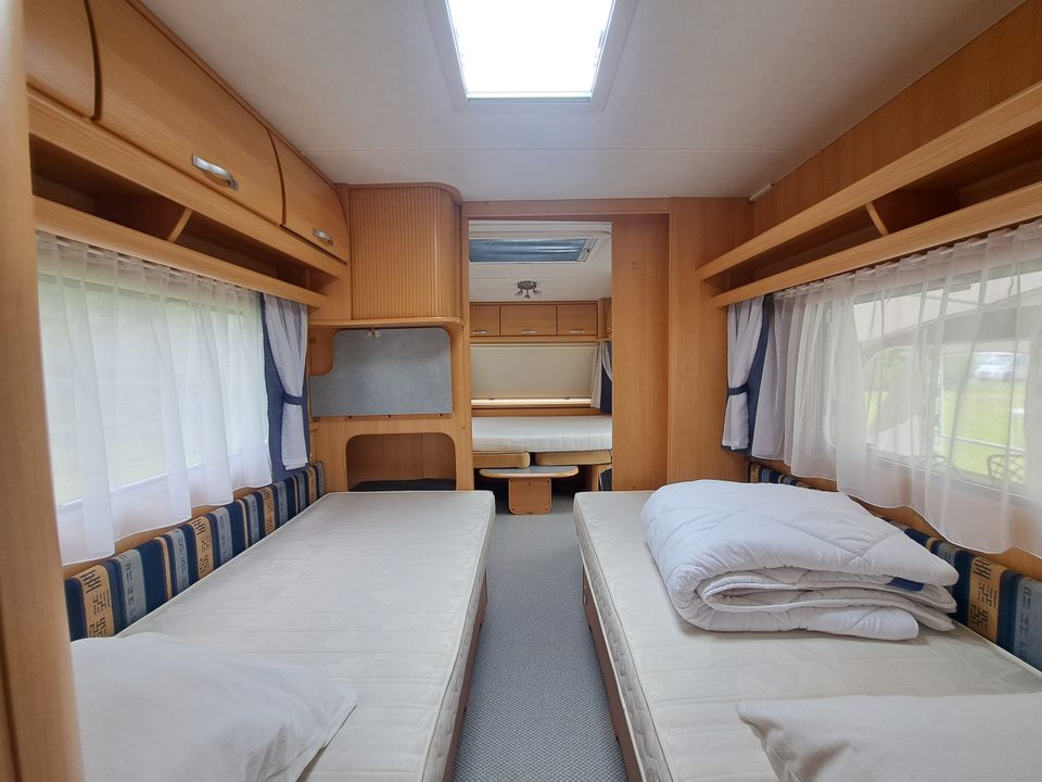 Enjoy the camping feeling in this fully equipped caravan for four people, with awning, toilet and comfortable sleeping areas.