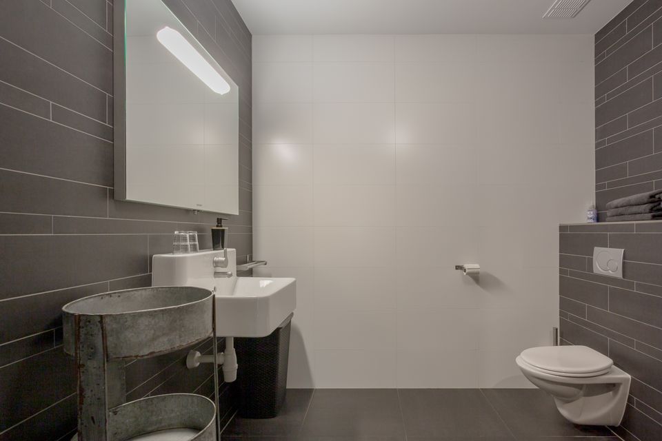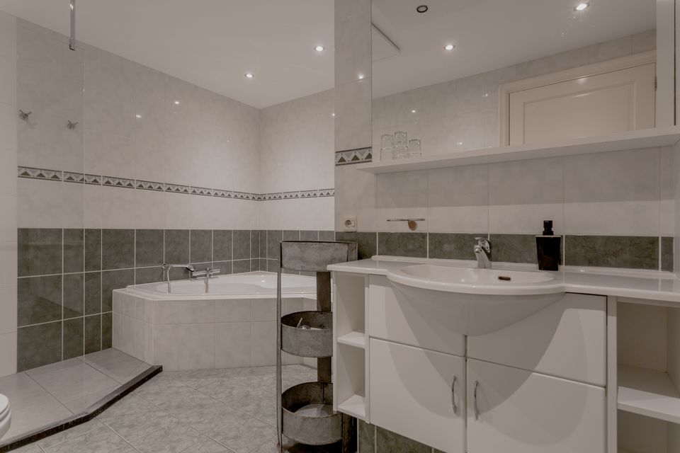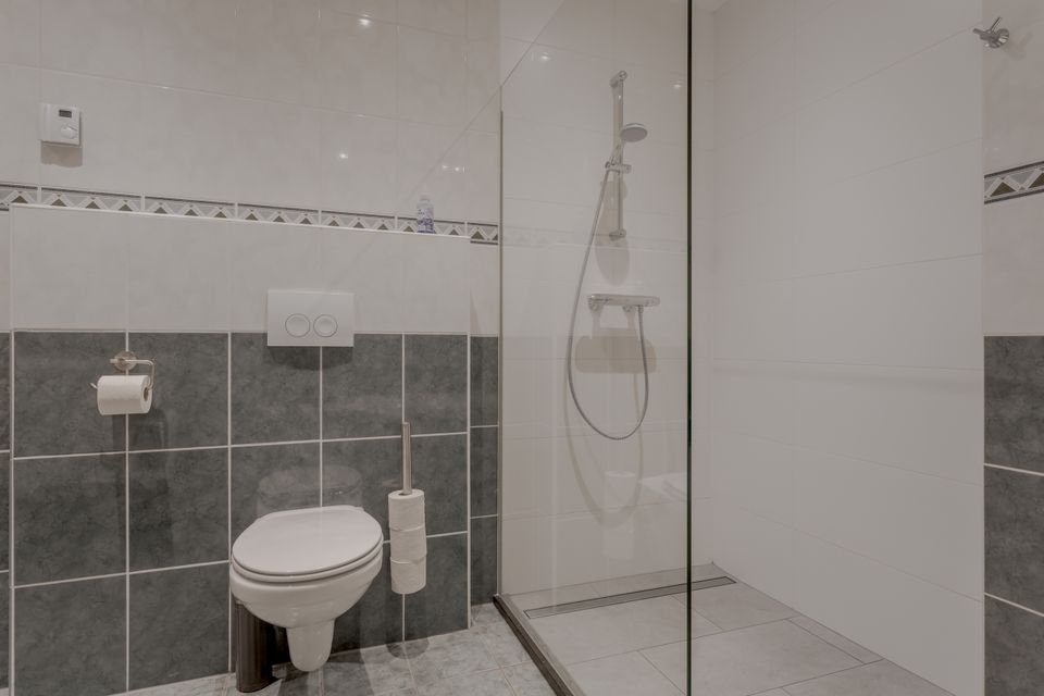 You will find this bright and very spacious six-person apartment at the rear of a former farm. There is a large open plan living area with a comfortable sitting and dining area and a spacious kitchen. This kitchen is equipped with a dishwasher, gas stove with oven, separate combi microwave and sufficient work space. In the apartment there are three bedrooms, each suitable for two people (two bedrooms have two single beds and one bedroom has a double bed with 2 mattresses). One of the three bedrooms has patio doors to the terrace. Both bathrooms have a shower, toilet and sink and one of the bathrooms also has a corner bath. All areas of this apartment are located on the ground floor. The apartment also has a separate toilet group with 3 toilets and a urinal. This can be used if 1 group rents all three apartments in the farmhouse. Both from the living room and from one of the bedrooms you have access to your own sunny terrace with various garden furniture.