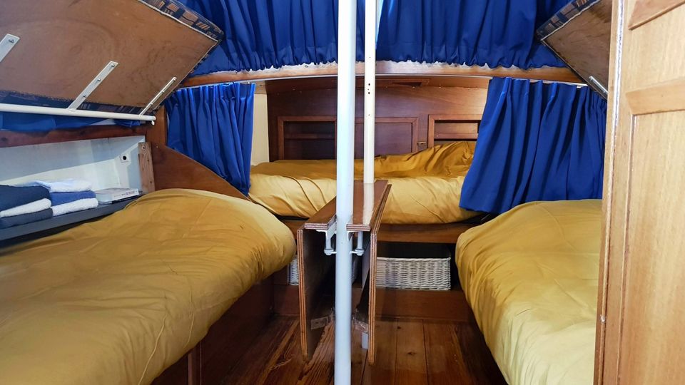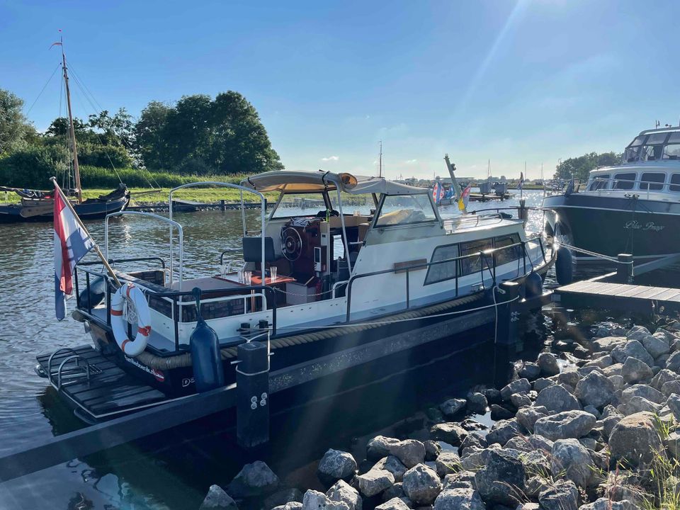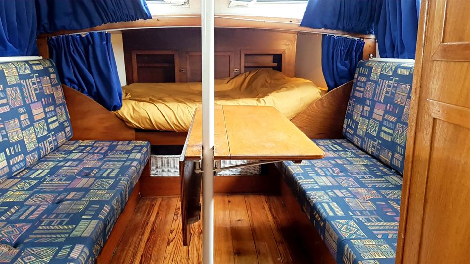 The Ysbrand, a Doerak 850 OK from 1966, was completely renovated in 2020 and is perfect for relaxing trips through Friesland. Thanks to the new engine and bow thruster, the boat is easy to steer, even without sailing experience. With its low draft you can go to many places, and instruction is possible for beginners. The boat offers space for four people, with comfortable sleeping places, blackout curtains and mosquito nets. There is hot water, gas, a refrigerator and USB connections, so that you are also provided with all the comforts in nature. The swimming platform is ideal for enjoying the water and the sun. On arrival, we are happy to provide a filled refrigerator, made beds, towels and a Nespresso and percolator for fresh coffee.