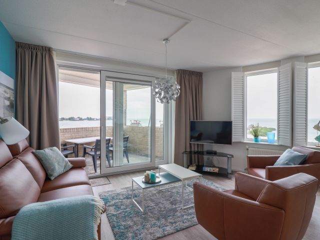The XL apartments are, as the name says, extra large four-person luxury apartments. All apartments have their own south-facing balcony from where you have a beautiful view over the beach of Makkum and the IJsselmeer. The living space is spacious with a sitting and dining area and a large open kitchen. The kitchen is equipped with all kinds of conveniences including a dishwasher and oven. There are two bedrooms and two bathrooms. The bathrooms are equipped with a bath and double sink or a shower and toilet. There is also a washing machine and dryer. The apartments can be reached via a lift and you have access to your own parking space.
