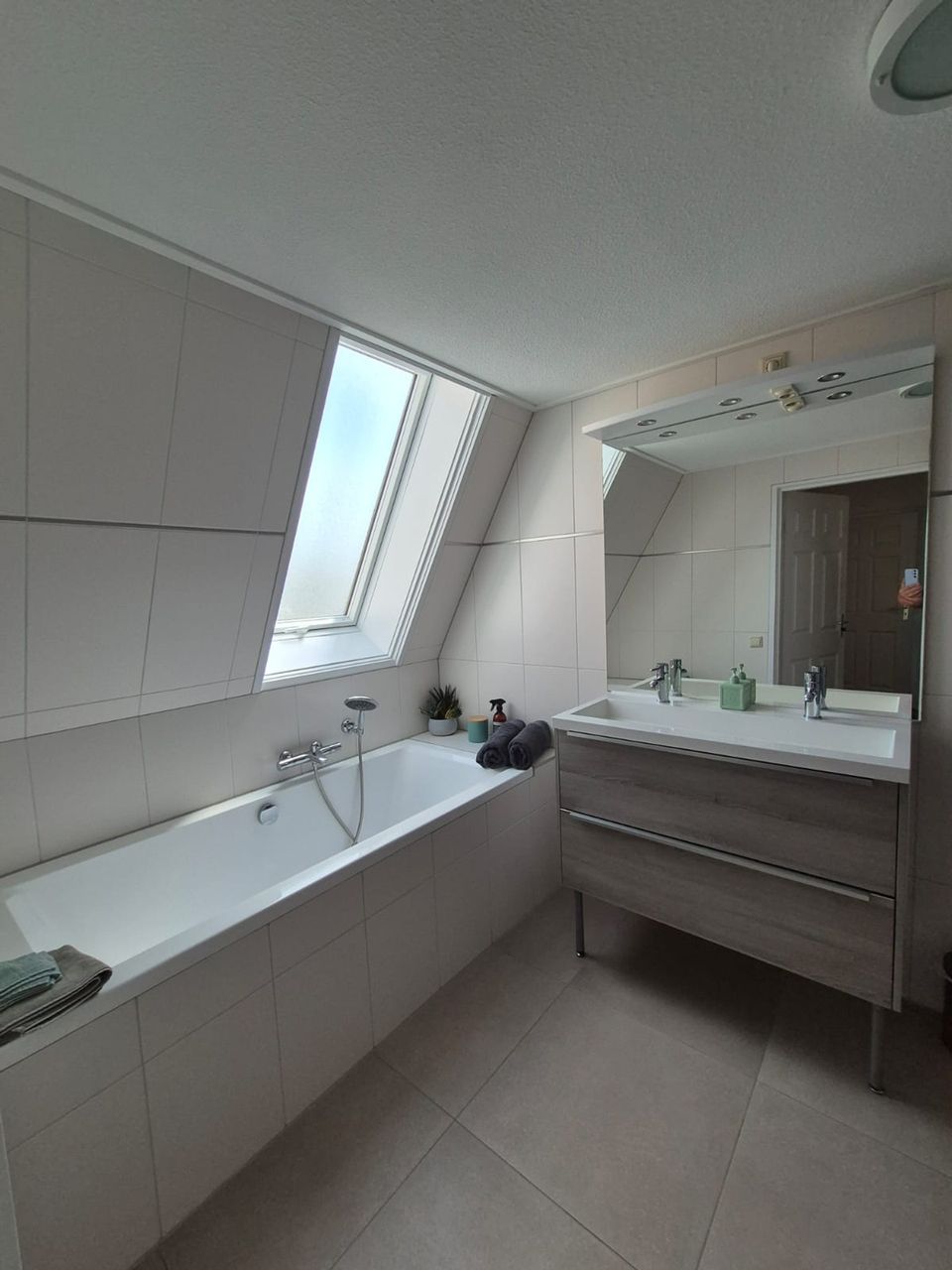 This bright apartment for three people is located on the first floor of this spacious apartment complex. You enter the spacious corner kitchen. This one has a lot of daylight. The open kitchen is fully equipped and includes a dishwasher, gas hob, sandwich maker, toaster and refrigerator. There is also a large table with four chairs. The cozy sitting area has a double sofa, two armchairs and television (Netflix). The apartment has two bedrooms. The first bedroom has a double bed and the second bedroom has a single bed. The spacious bathroom has a sink, bath and separate shower with a rain shower. The apartment has a private entrance and balcony. And is equipped with air conditioning.