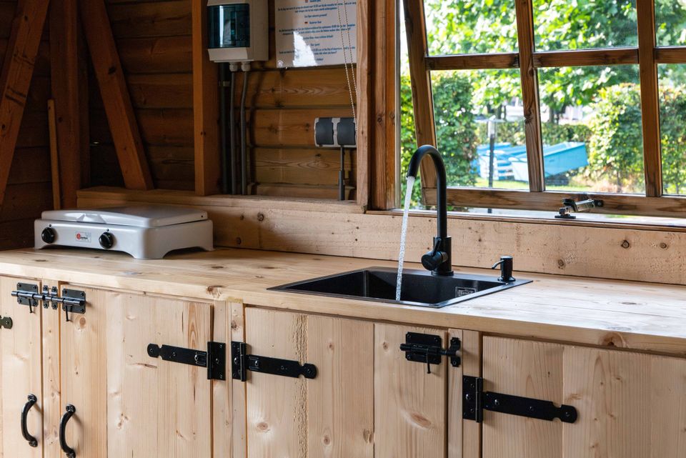 De Rakken is a beautifully situated holiday park on the edge of Woudsend. It features a spacious campsite, three camping pods, two hiker's cabins, and holiday homes for six people. You can moor your own boat in the harbor or rent one. At the reception, you can rent (electric) bikes, as well as stand-up paddleboards and kayaks! The charming town center of Woudsend, with its numerous shops, restaurants, supermarket, and bakery, is just a few minutes' walk away.