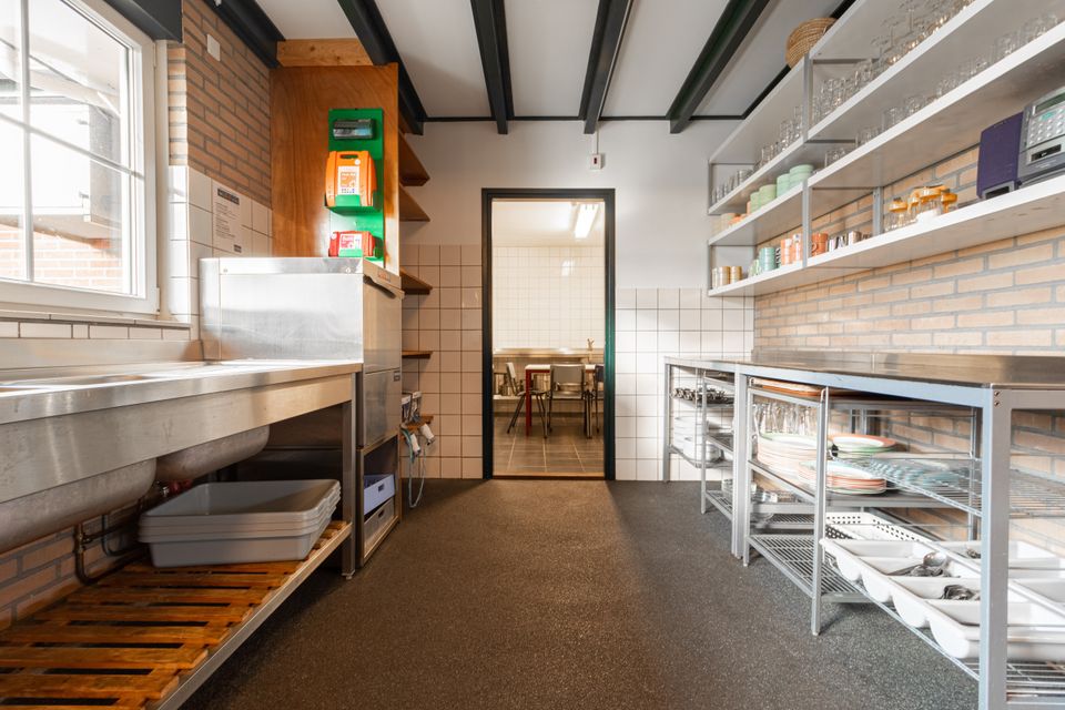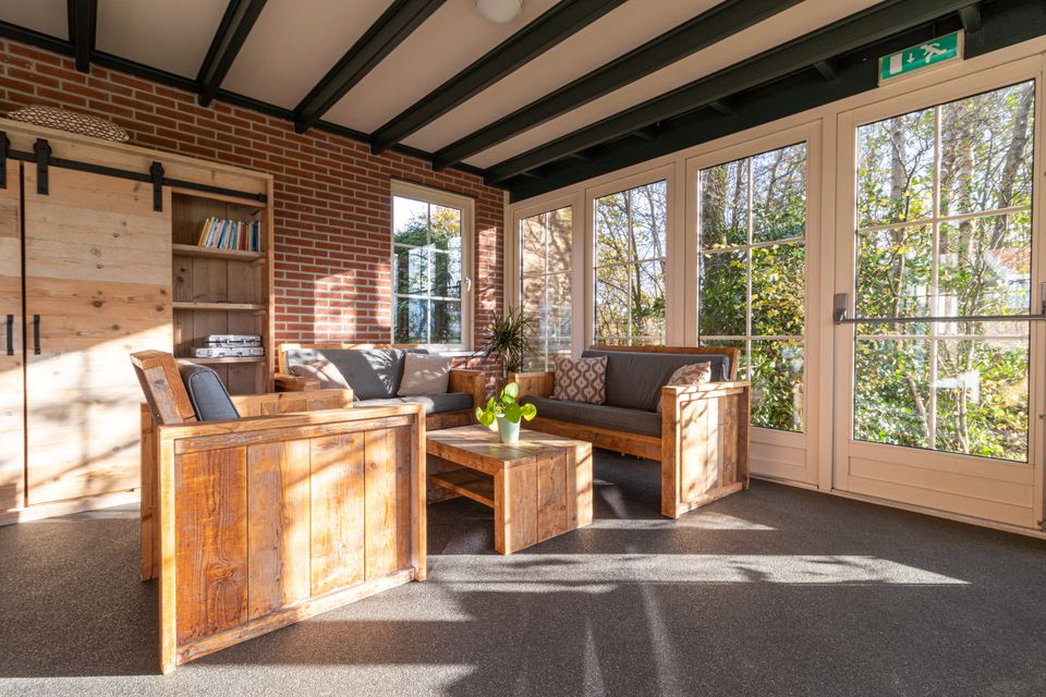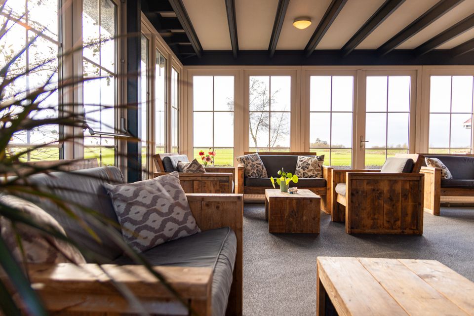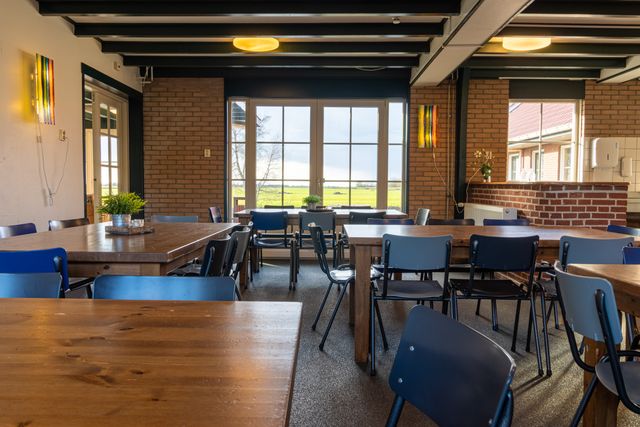 't Rak is a beautiful group accommodation with a great view from the conservatory. There is also a large living room with a sitting area, bar and a kitchen with eight hobs, an oven, two sinks and a professional dishwasher. There are 12 bedrooms in 't Rak, 11 of which are suitable for four people and the 12th bedroom is suitable for two people. This makes the group accommodation suitable for 46 people. Each bedroom has a sink with hot and cold water. There are 5 showers and 4 toilets in 't Rak.