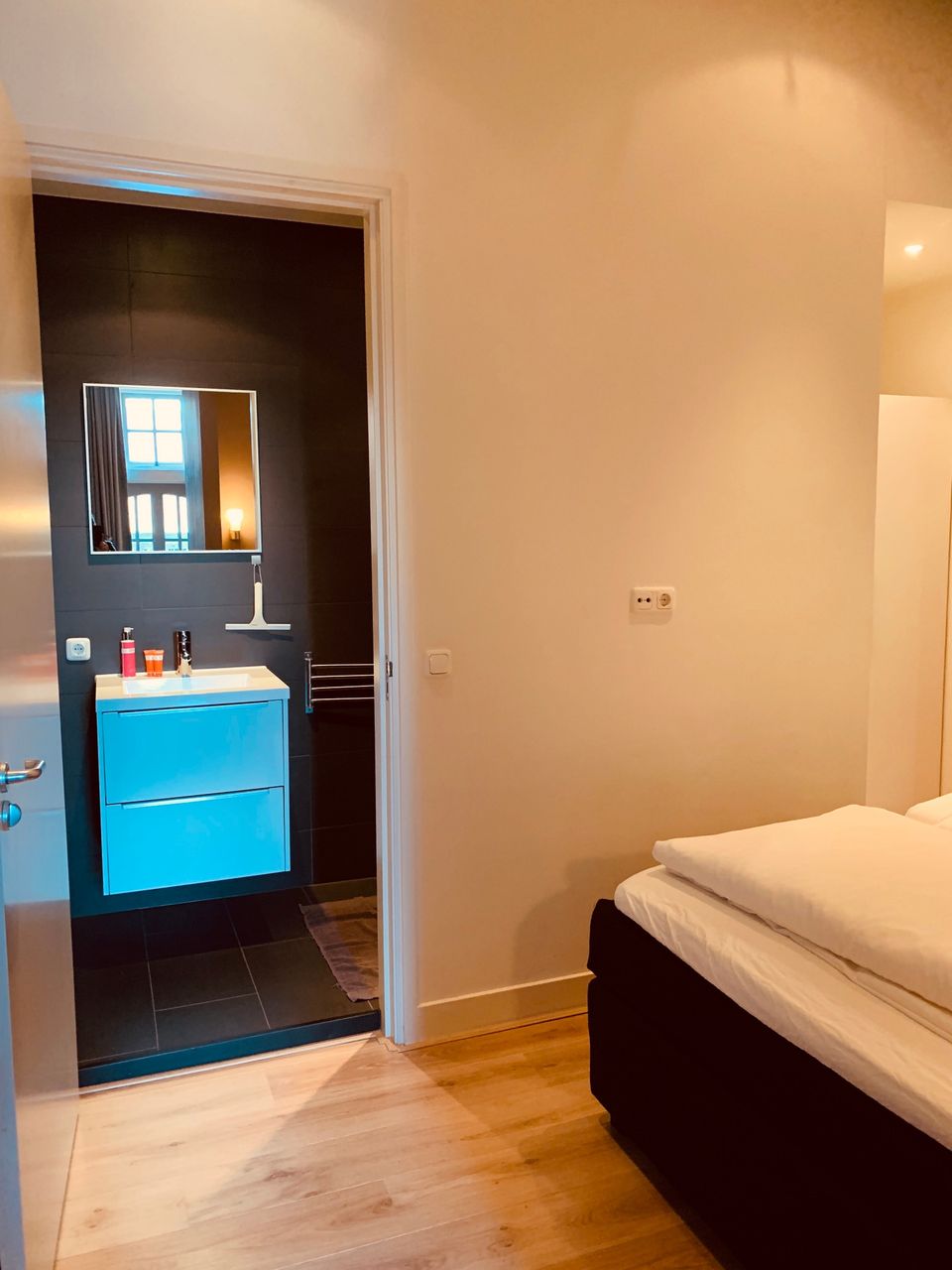 You will find this nice apartment in the center of Sneek. The apartment has a private bathroom with rain shower and separate toilet. There is one bedroom in this standard apartment, which is equipped with a double box-spring bed. The spacious living room has a sofa or 2 armchairs, a dining table with chairs and a well-equipped kitchen. This kitchen is fully equipped, including a combi oven and refrigerator.