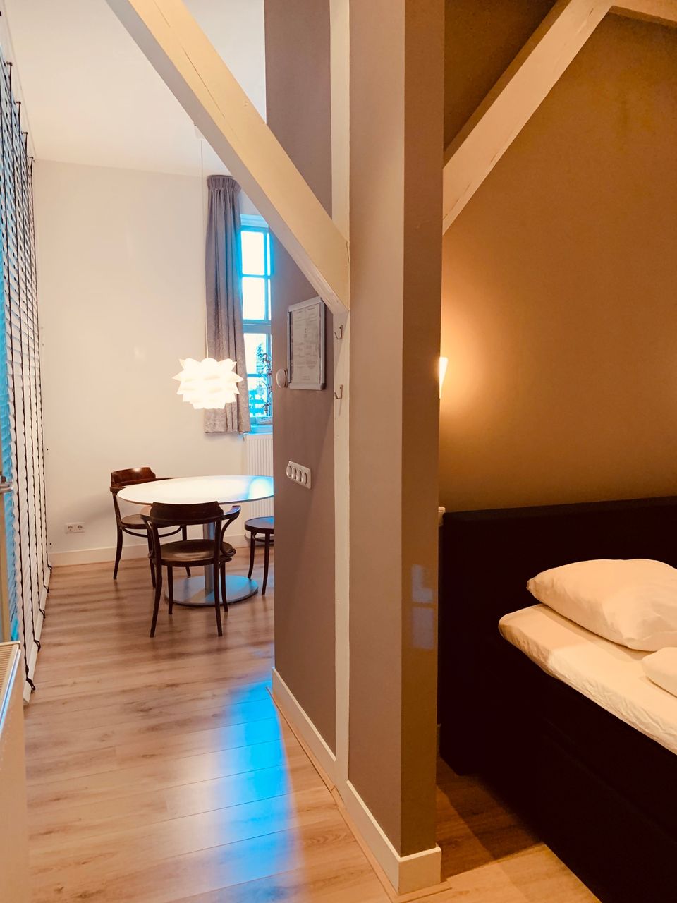 Stadslogement By Peek has 2 warehouses that are 100 meters apart. The Junior apartment, Family studio and 1 standard 2-person apartment are located in the warehouse on the Singel. In the warehouse on the Lange Pijpsteeg there are four 2-person standard apartments. All apartments have their own kitchen with the necessary equipment, bathroom, toilet, sitting area, kitchen table, double box spring, free WIFI.