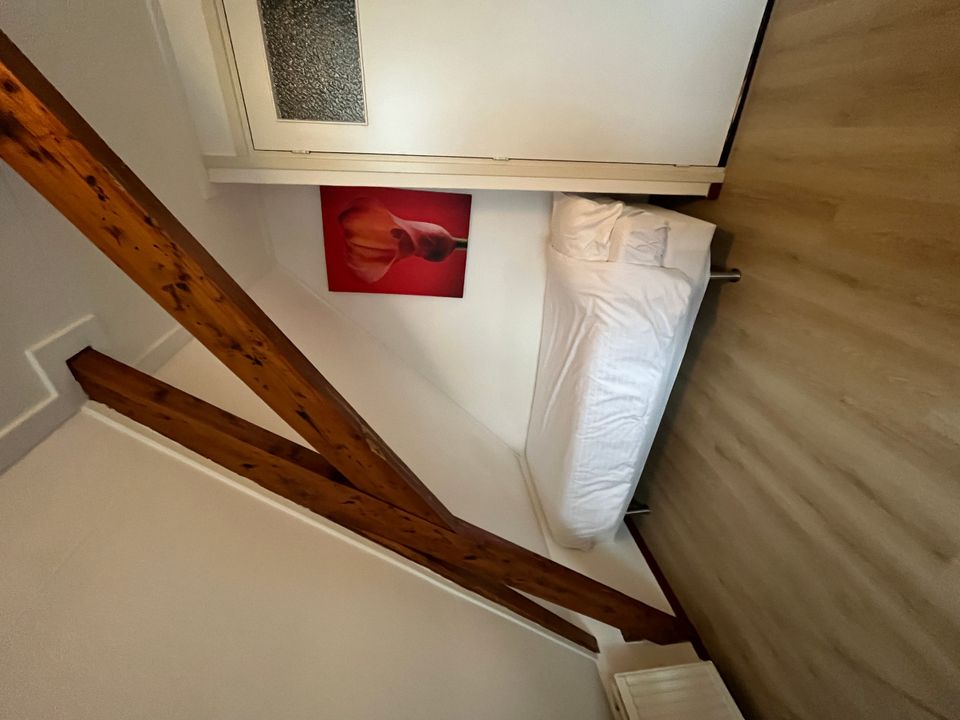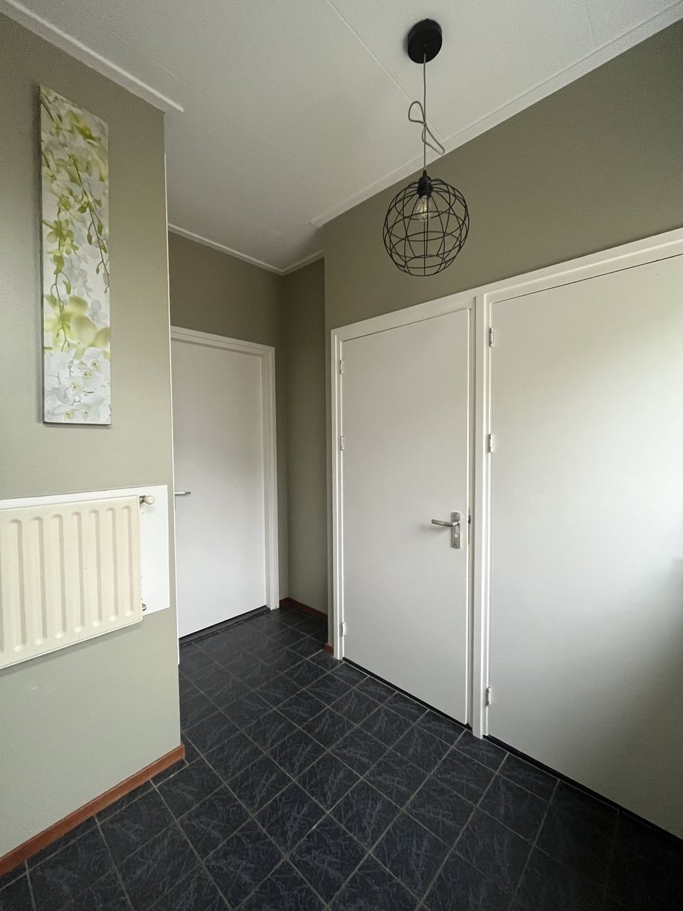 You enter a beautiful light and spacious living room with also the dining area. There is also a spacious kitchen. On the ground floor there is a bathroom with a shower, bath and a separate toilet. You have access to your own lawn with a terrace and a view of the harbor of Poppenwier. On the first floor are two bedrooms, one room with a double bed and a bedroom with a double bed and a single bed.