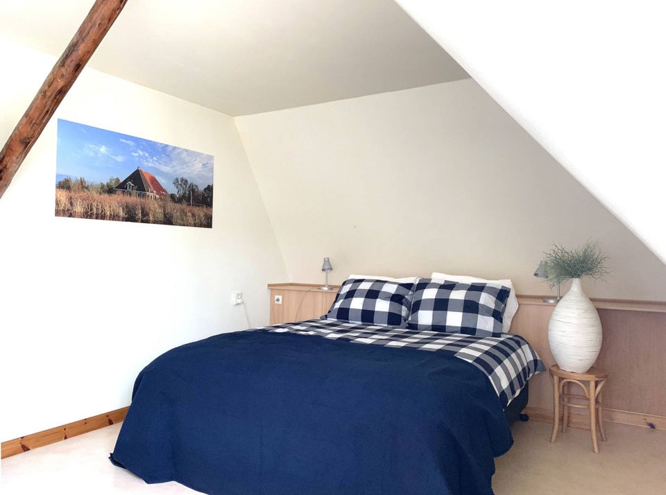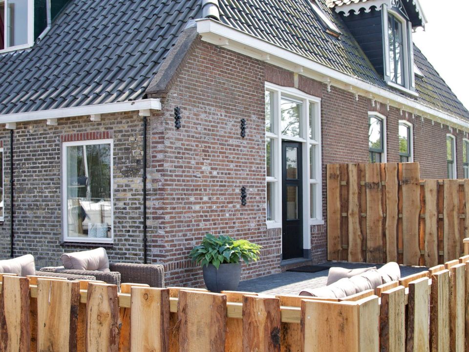 This cozy house is suitable for 5 to 7 people. There is a large living and dining area where the kitchen is located. This kitchen is fully equipped, with a gas stove, refrigerator and dishwasher. The house is located in a part of a former farm and is located on the water, so you have a beautiful view! On the first floor there are two bedrooms (including 1 box bed), as well as a bathroom with shower and toilet. Additional guests can sleep on the sofa bed in the living room. In addition to the bathroom on the first floor, there is an extra toilet on the ground floor.