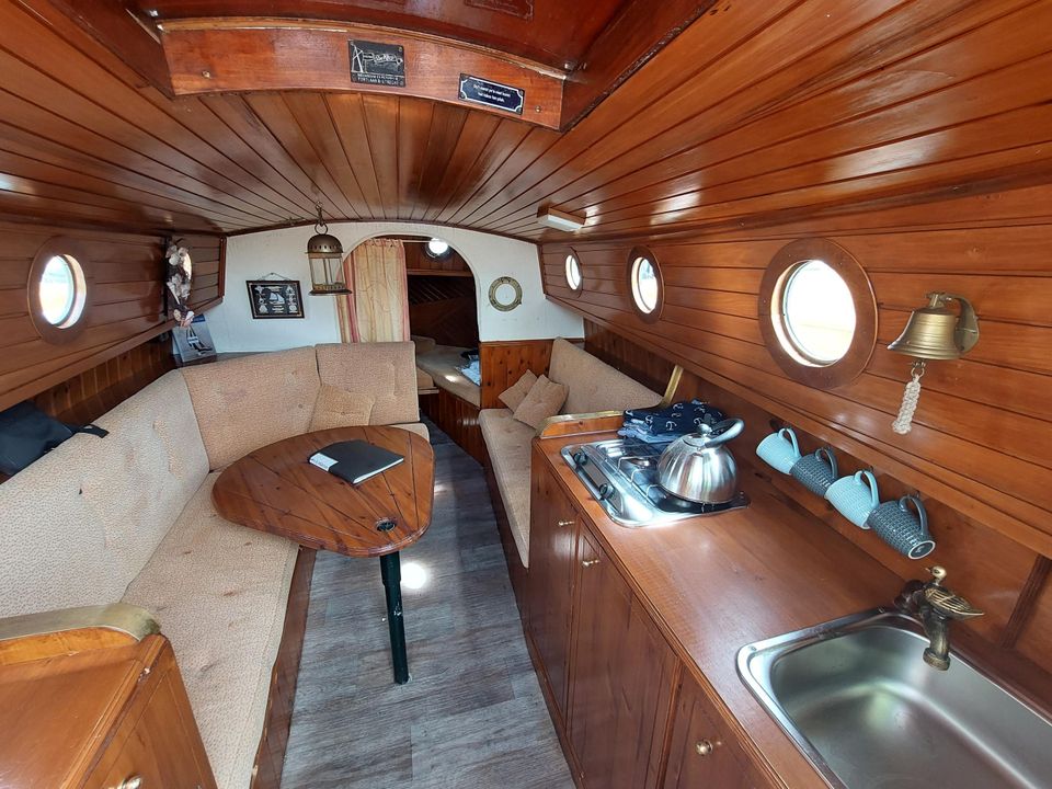 Step aboard this light and easy-to-sail flatboat. The boat has a diesel engine, kitchenette and toilet. There are two beds in the back, there is also room for two small children. There is also a seating area inside and outside in the cockpit. The Swaen is relaxed to sail and sails well balanced.