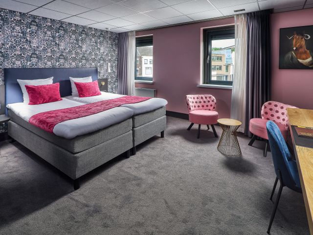After you have checked in at the reception and walked into the room, you immediately see the comfort and elegance of the hotel room. Immediately upon entering you see the bathroom, it is fully equipped! The room itself is cozy and you will want for nothing during your stay. The two single box-spring beds are comfortable and offer a good night's sleep. The seat with side table is cozy and the desk where you can work is also very nice. When you open the curtains, you look out over the city center of Emmeloord!