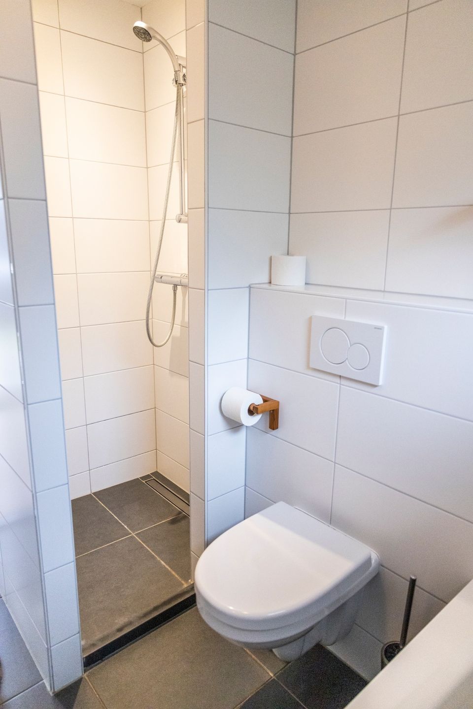 Hotel Restaurant Jans offers 15 rooms in Swedish chalets located in the garden behind the hotel. Each room has a private entrance and a small terrace. The chalets feature a spacious bedroom with two single beds, a bathroom, and a seating area.