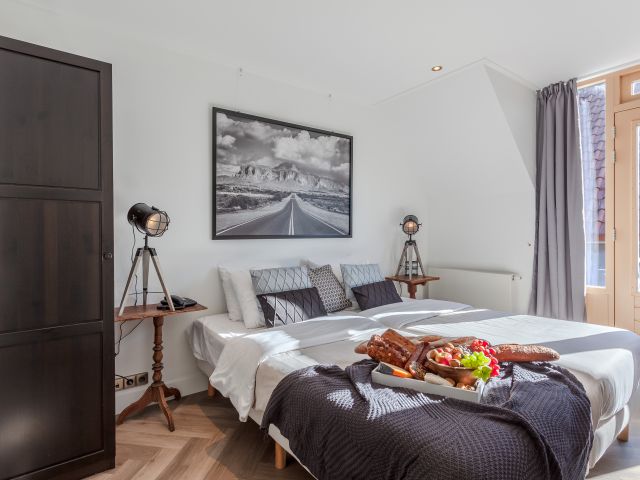 You can relax in this spacious room. You are provided with a sitting area, desk, television, radio and more. You can also enjoy a beautiful view from the French balcony. If you feel like being with people for a while, you can take a seat on our terrace on the water.