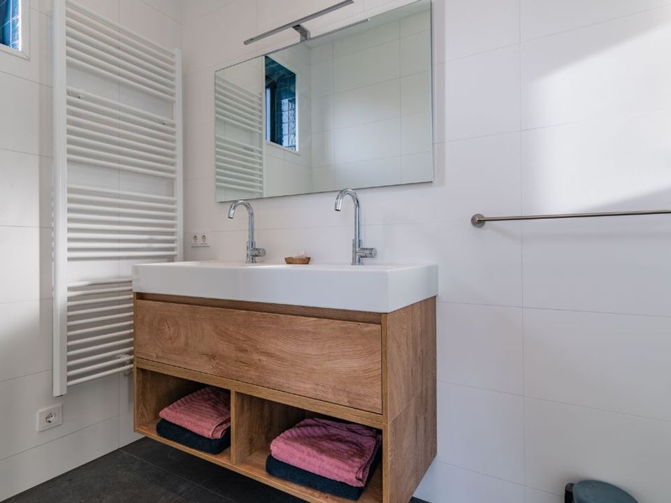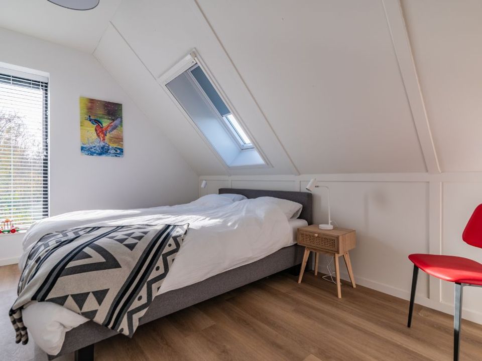 Inside, the home is tastefully and modernly furnished and equipped with every convenience. On the ground floor, there is one large (master) bedroom with an en-suite bathroom and French doors opening onto the terrace. There is also a separate toilet near the entrance. The first floor, accessible via a staircase from the hall, features one large (master) bedroom with an en-suite bathroom, two bedrooms, and one separate bathroom with a bathtub. A washing machine, dryer, high chair, and games are available. Outside, the children can play on the jetty and in the water. There is also a veranda with sliding windows, a spacious dining table, and a lounge area by the water. You can enjoy the sun all day long, but if you wish to seek shade, that is also possible. There is a private beach, and the lawn is large enough for all kinds of outdoor games.