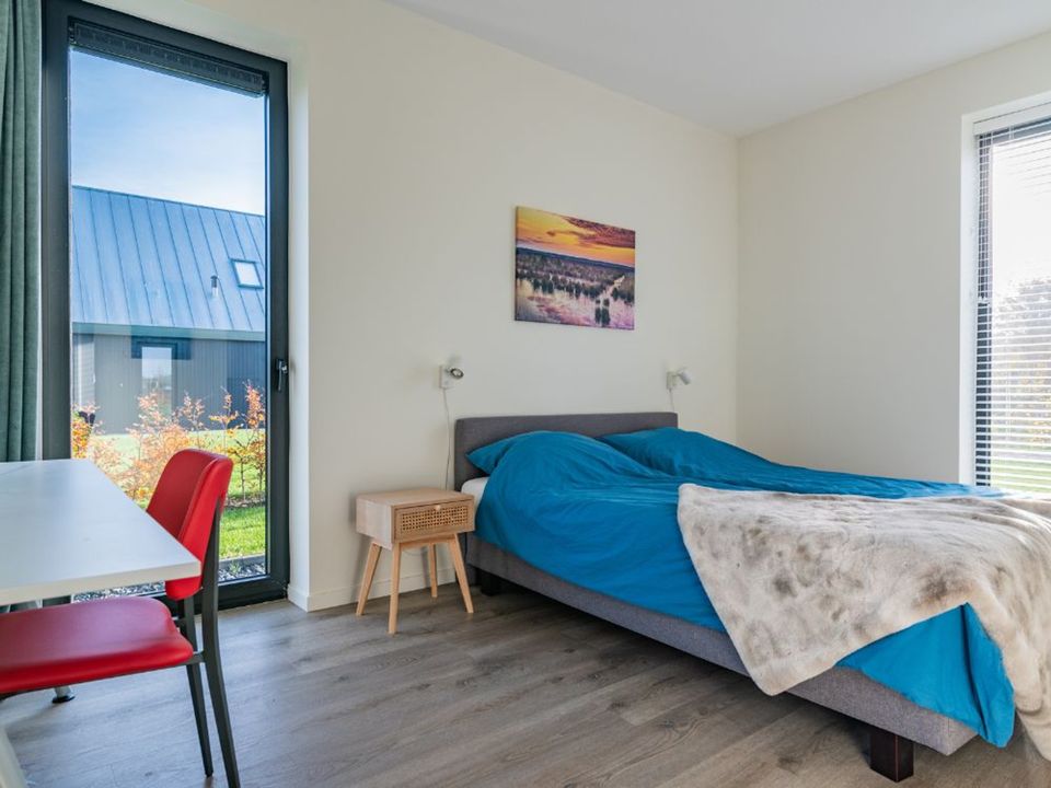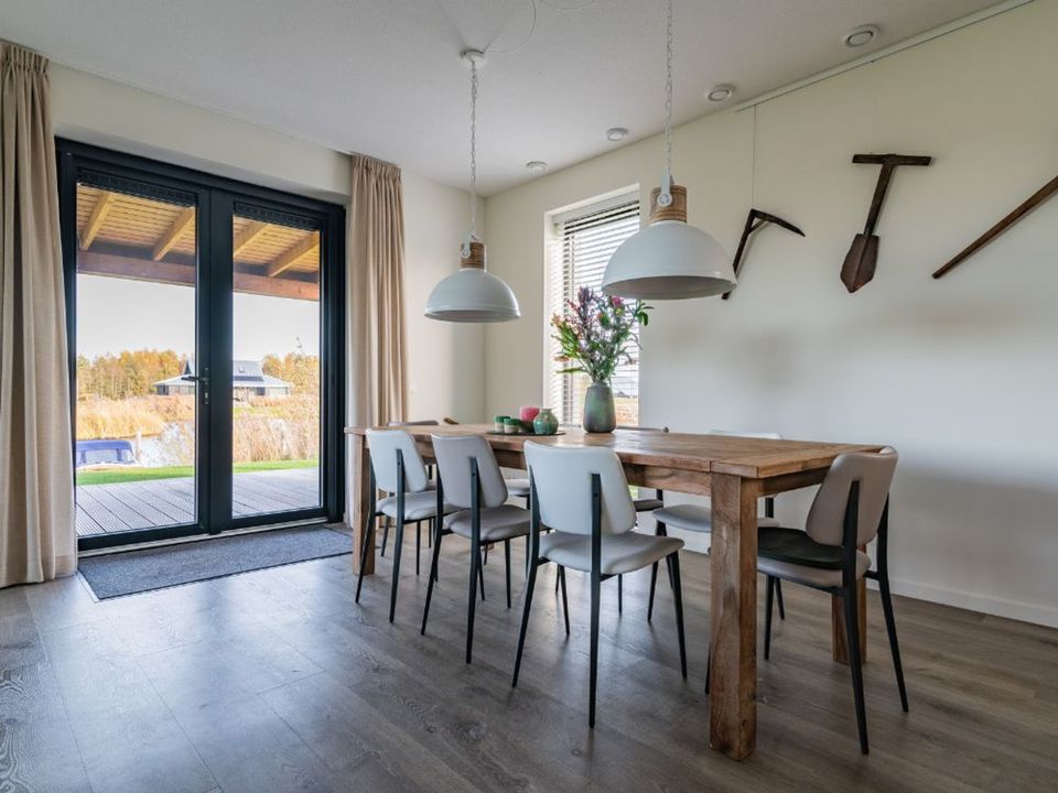 Beautifully situated on Lake Eysinga lies this charming and sustainable holiday villa, suitable for 8 people. Given the villa's very spacious layout, it is perfectly suited for two families. Enjoy watching children play on the jetty, go stand-up paddleboarding on the water, and enjoy the sunset on the veranda. Rent a sloop and experience the boating opportunities on and around the Frisian Lakes. Lake Eysinga is small-scale and quiet, yet has its own boating connection to the Langweerder Wielen, from where you can sail in any direction. There is also a golf course in the immediate vicinity.