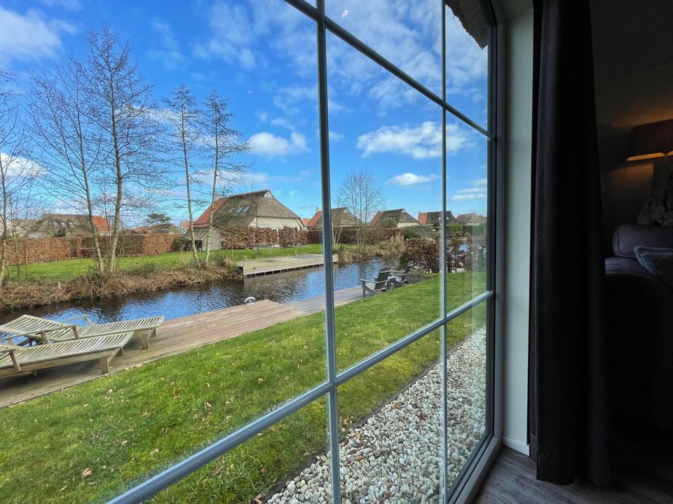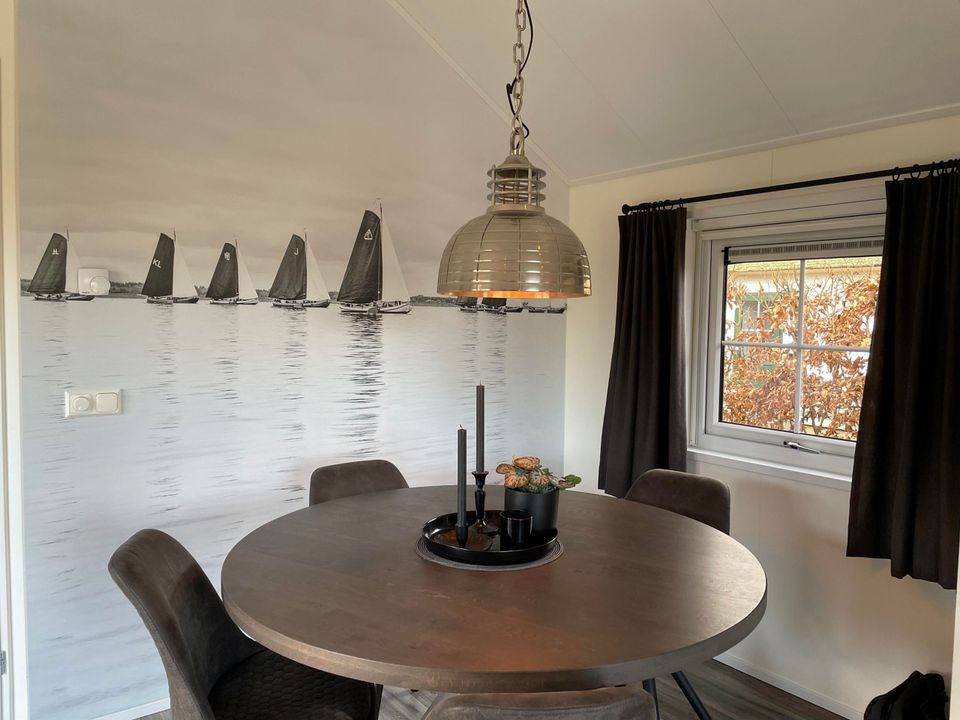 When you open the doors of this chalet and step into the garden, you are immediately immersed in nature. The chalet has a modern open kitchen that leads into the living and dining room. The kitchen is well equipped and the living room is cozy. This type of chalet has two bedrooms and a practical bathroom. Through the terrace on the water you can board your (rented) sloop in no time!