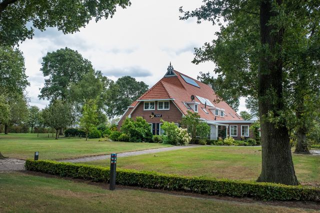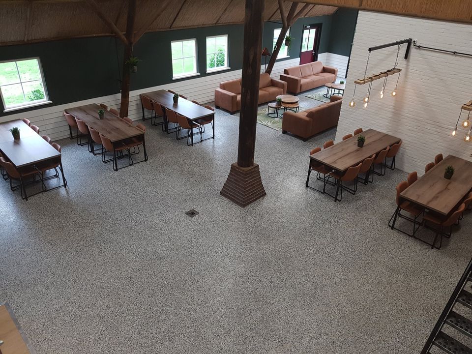 This former farm has been beautifully converted into a large group accommodation that can accommodate 97 people. Upon entering you step into the dining room. Through the hall you enter a large living room with comfortable sofas and a number of seats. Through the dining room you enter the large professional kitchen. This is fully equipped including a large gas stove, fast dishwasher and an oven. The sanitary facilities of this group accommodation are located on the ground floor. Three separate showers have been realized in the hall, in addition to the sanitary facilities for men and women. These two sanitary areas consist of two showers, three toilets and several sinks. There is also a bedroom on the ground floor, which is suitable for 6 people. On the first floor you can look into the living space from the balustrade. There are 8 bedrooms on this balustrade. Ranging from 7 to 22 people. There is a possibility to rent the separate front house of the farm. Another 10 people can stay here. This room is ideal for groups, where the management values their privacy and wants to stay separate from the group. The front house has a private bathroom with shower, bath and toilet and a separate toilet. A kitchen, living room, office and 5 bedrooms. Around the farm is a terrace, sports field, panna cage, playground with air trampoline and cable car!