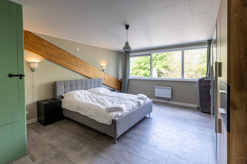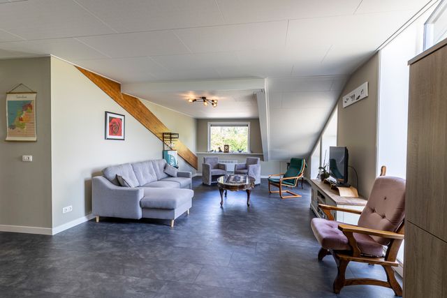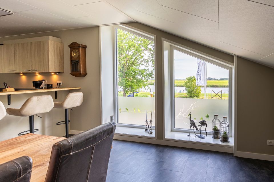 A very spacious apartment with a large kitchen and a large living room. It offers stunning views of the water (Slotergat) and the surrounding countryside. It has three spacious bedrooms and a sofa bed in the living room. One bedroom has a double bed and two additional foldaway beds.