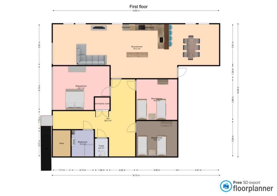 - 3 bedrooms