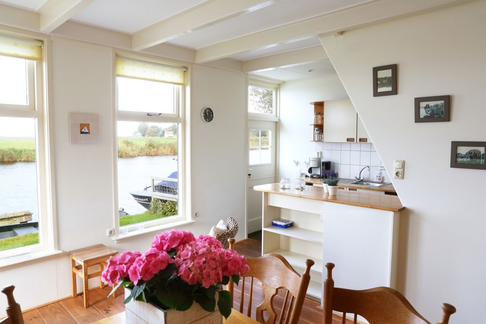 This charming semi-detached holiday home is peacefully situated on open waterways with stunning unobstructed views of the water and meadows. It's suitable for two adults and possibly two children (not suitable for four adults). The entrance leads into the furnished living room with an open-plan kitchen. The kitchen is equipped with a refrigerator, oven, freezer, and electric stove. On the ground floor, you'll also find a toilet and a bathroom with a sink and shower. There's also an adjoining bedroom with a double bed and two single duvets. On the first floor, there's another bedroom for two children with two single beds and duvets. A cot is also available. There's ample closet space. There's no television, but there is a radio and CD player. The holiday home is heated by a gas heater in the living room and bathroom. Surrounding the house, you can relax outdoors and fully enjoy the peace and quiet!