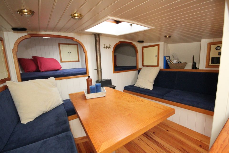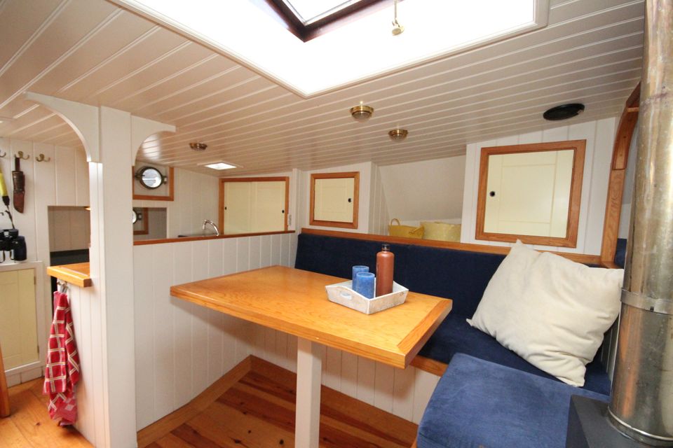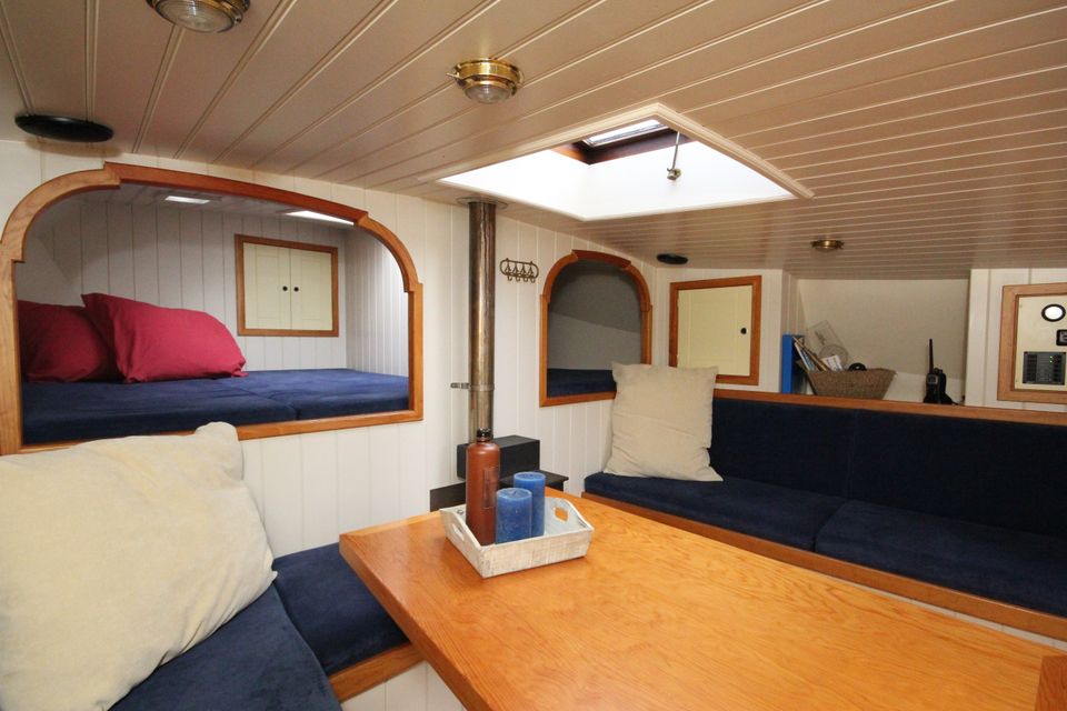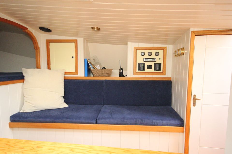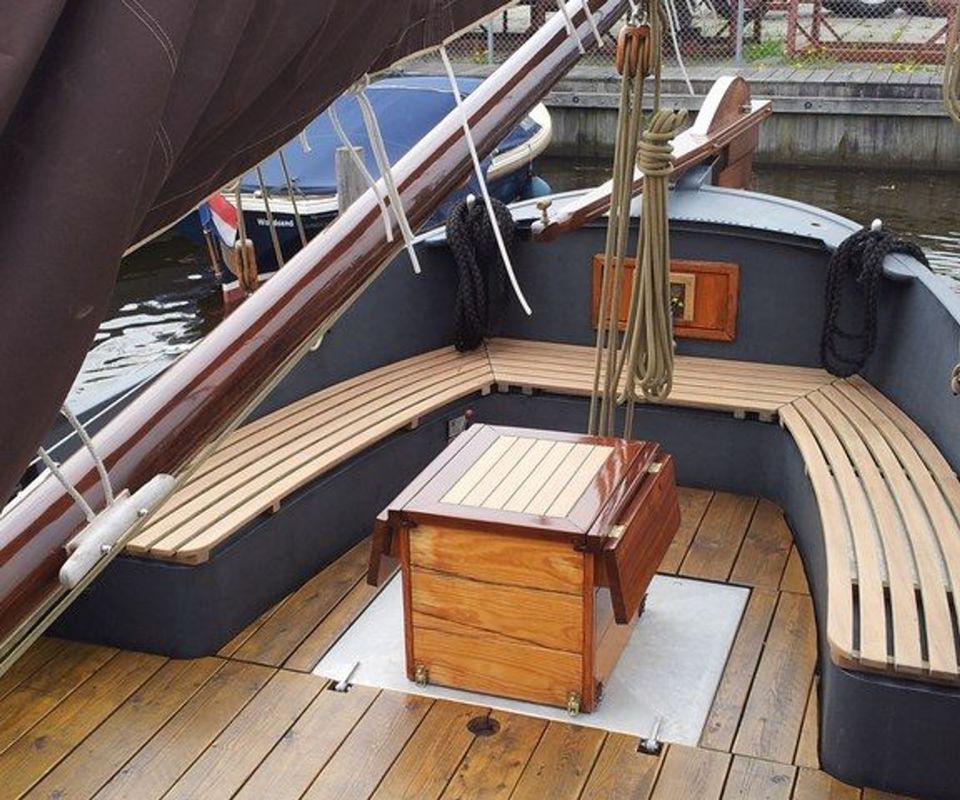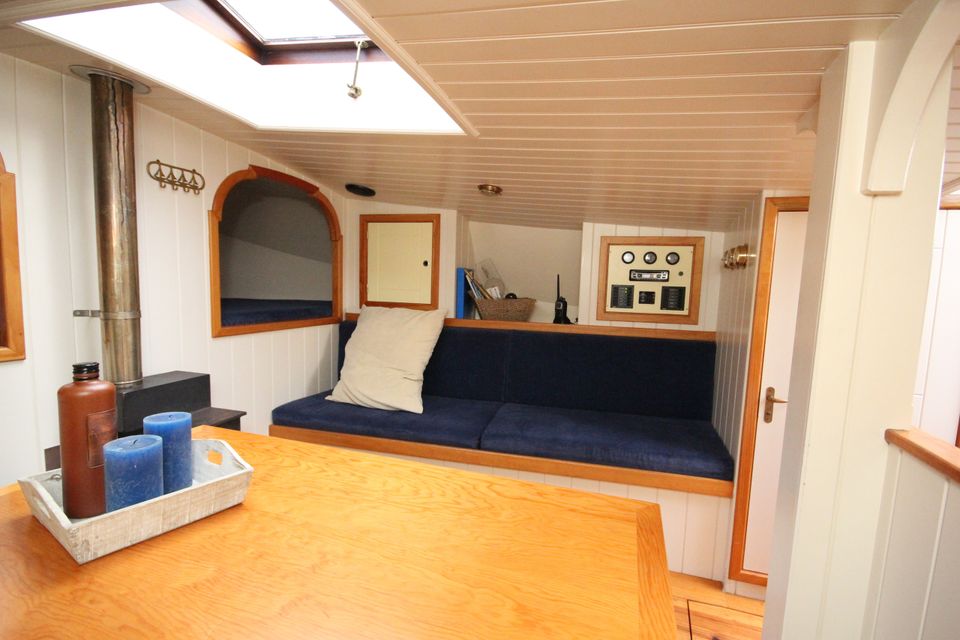 You board the large Lemsteraak. Inside there is a cozy and bright atmosphere. There are two double beds and a single bed. In the kitchen you will find, among other things, a stove and refrigerator. There is also a toilet, wood stove and electric heater on board. You can sail on the Frisian Lakes, the IJsselmeer and the Wadden Sea with the WB22!