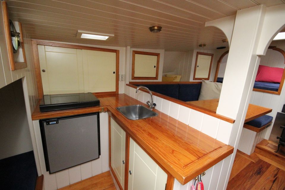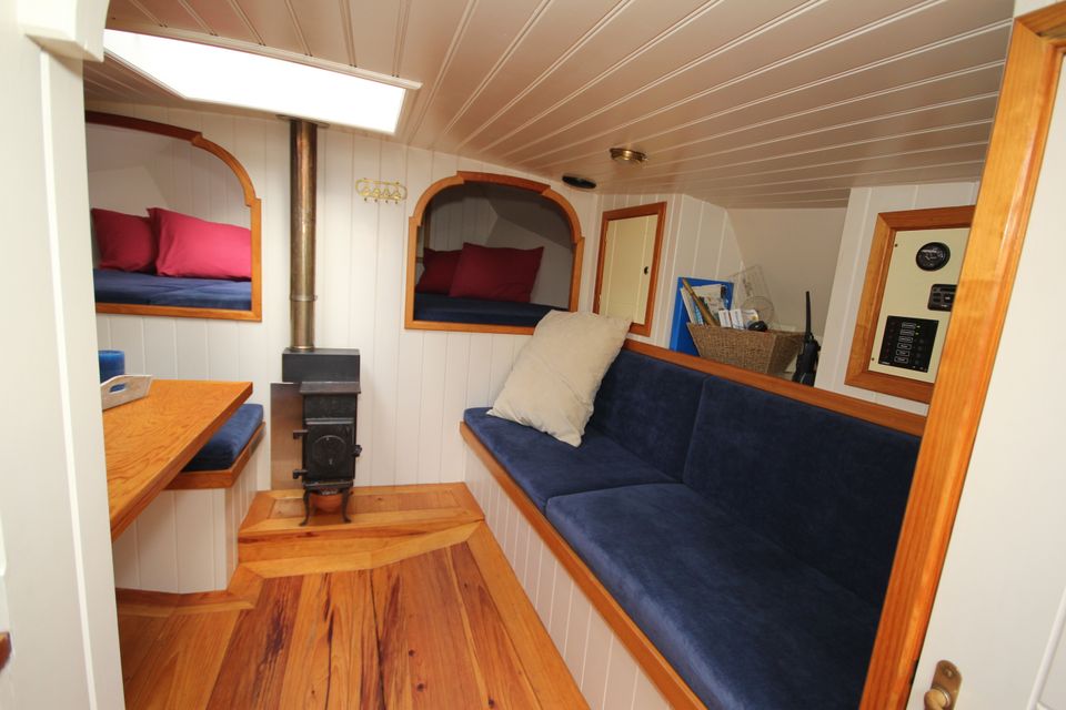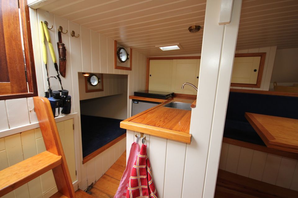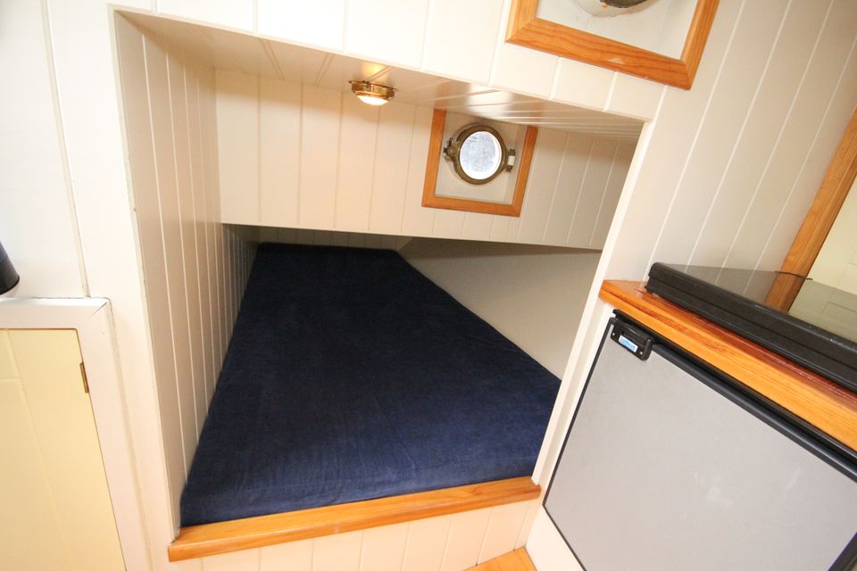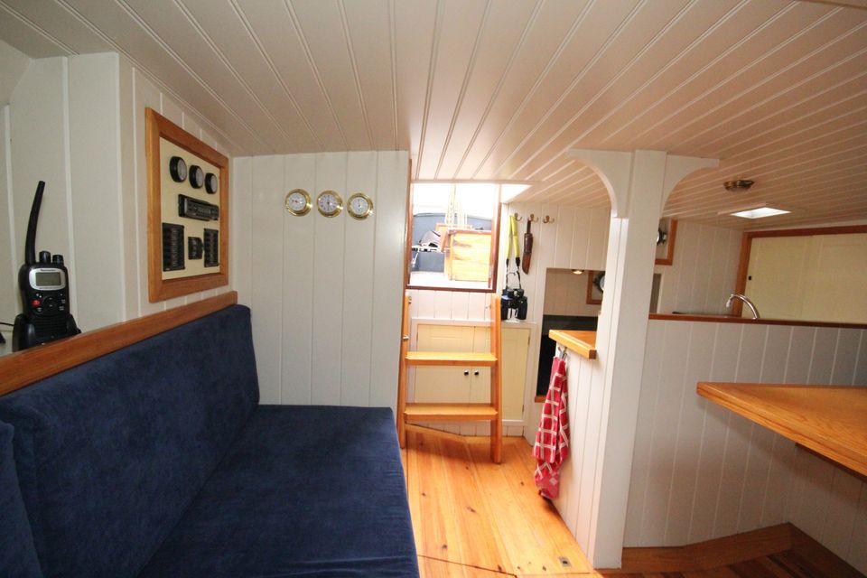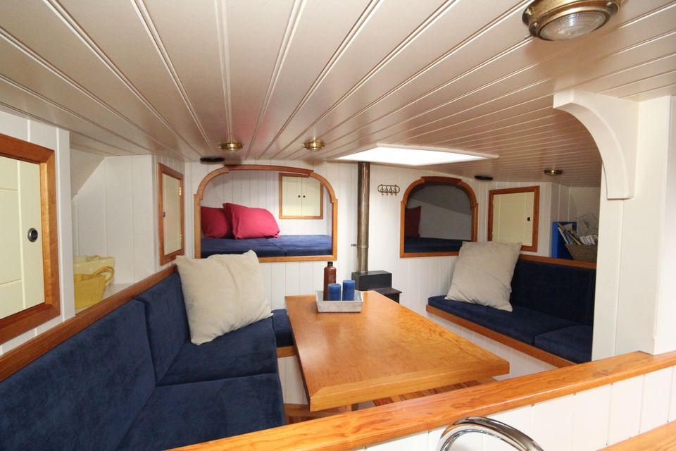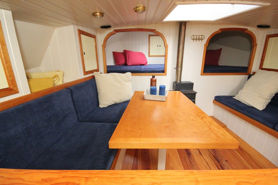 You board the large Lemsteraak. Inside there is a cozy and bright atmosphere. There are two double beds and a single bed. In the kitchen you will find, among other things, a stove and refrigerator. There is also a toilet, wood stove and electric heater on board. You can sail on the Frisian Lakes, the IJsselmeer and the Wadden Sea with the WB22!