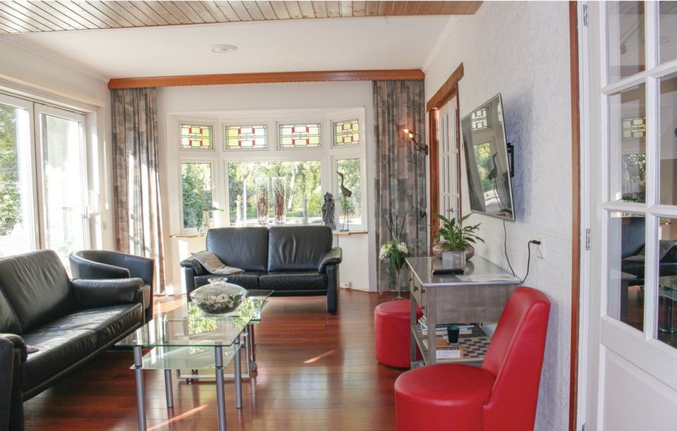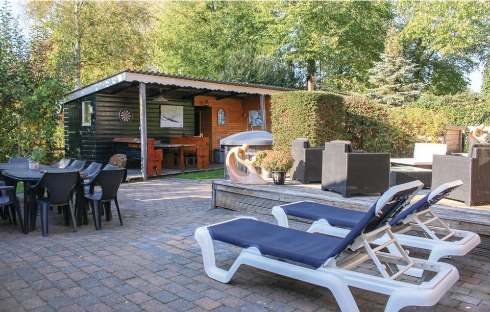 Cozy accommodation which is suitable for a group of up to 10 people. The holiday home is located on a small-scale campsite right on the water. After sailing for a few meters you arrive at the small lake, the Nannewiid, surrounded by a nature reserve. The detached house has a cozy living room with a complete open kitchen. The house has 7 bedrooms with 10 beds (single and double) and 3 bathrooms with shower, sink and toilet. There is a games room with a pool table, football table and television. Outside are several (covered) terraces, a sauna and a hot tub. Plenty of options for entertainment and relaxation. You can also use canoes and pedal boats free of charge. In short: come and enjoy the peace, nature and each other!
