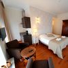 Beautiful spacious corner room at the front and rear of the hotel. The hotel room has a comfortable box-spring bed and a sitting area with a flat-screen television. The room has its own small kitchen with complete inventory. The room also has a spacious bathroom with a shower, sink and toilet.
