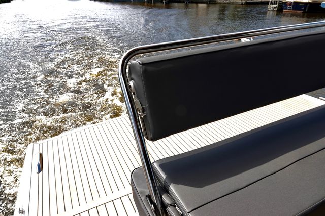 The Northman 1200 Electric is designed for luxury and comfort, with three cabins below deck, each with double beds over 2 metres long, and two bathrooms, each with a shower, electric toilet and washbasin. The upper deck offers a spacious living area with panoramic 360-degree views, an L-shaped sofa, a dining area and a modern kitchen equipped with an induction hob, fridge, combi oven and Nespresso machine. The living area is seamlessly connected to the aft deck by means of the folding doors. The yacht has a stylish interior with luxury finishes, LED lighting and a heating and ventilation system for optimum comfort. Outside there are various areas to relax, including a sundeck lounge on the roof, a sofa on the foredeck and a sofa with a movable backrest on the aft deck. The spacious swimming platform with deck shower and flexi-teak upholstery add extra practicality and style.