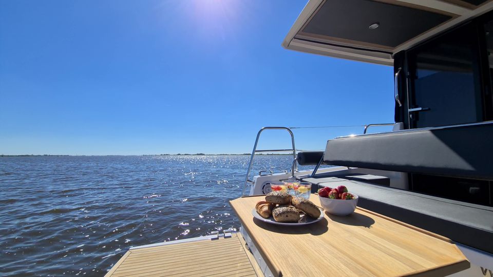 Unique boating holiday: 100 km electric cruising on a luxury motor yacht! Enjoy the peace and quiet on the water and the comfort of home.