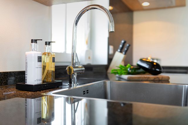 This tastefully decorated waterfront villa has a spacious living room with a comfortable seating area. From the living room, with sliding door, you can step onto the deck terrace with a beautiful view over the water. The spacious kitchen is fully equipped with a long dining table for the entire group. On the ground floor there is also a bedroom with two single beds and a bathroom with a spacious Finnish sauna. You reach the first floor via the stairs in the hall. Here are three bedrooms with single box-spring beds and a double box bed. Each room has a smart TV and ample closet space. There are also three bathrooms, one of which has a bathtub and a separate toilet. For extra comfort there is a laundry room with washing machine, tumble dryer and extra fridge.