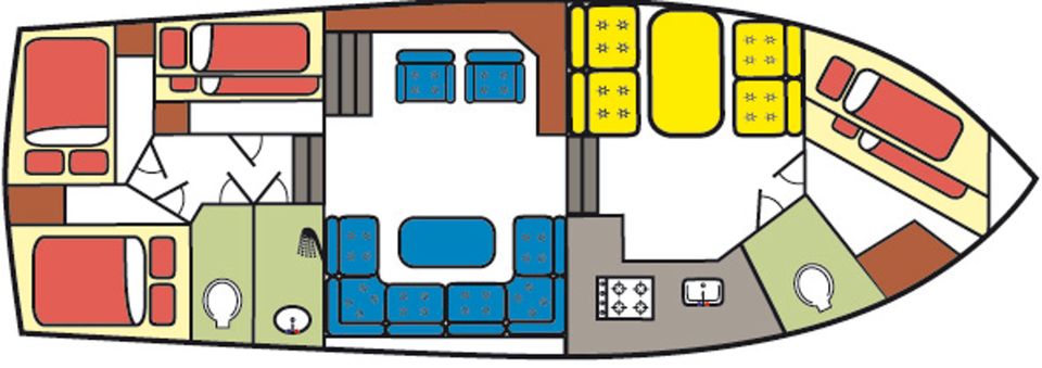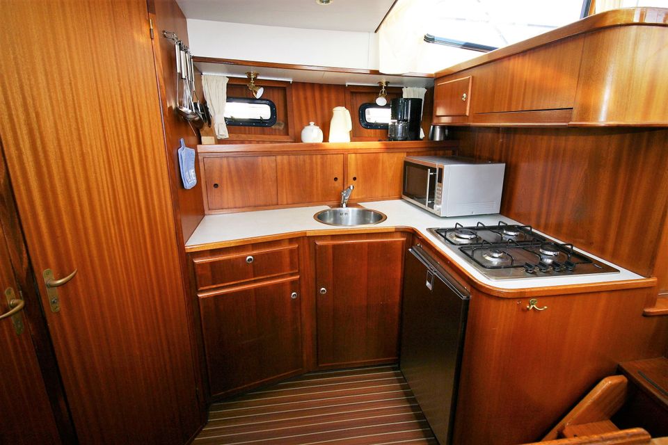 With the powerful 6-cylinder diesel engine and the strong bow and stern thrusters you can enjoy optimum control and sailing comfort.