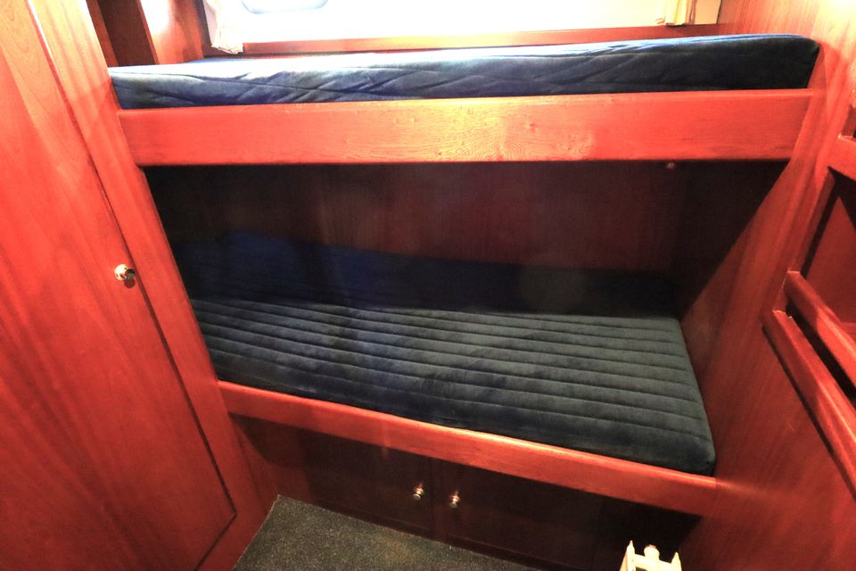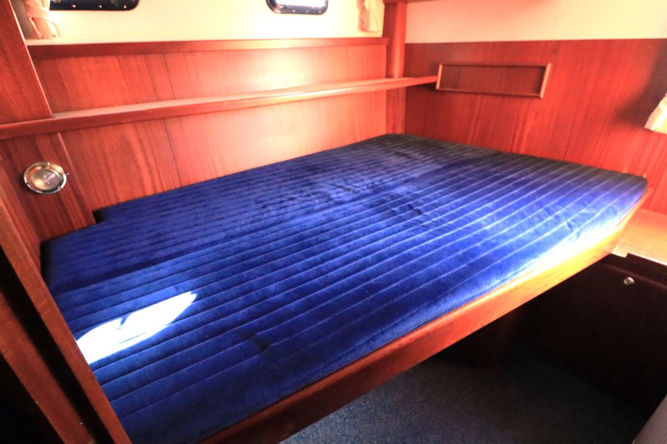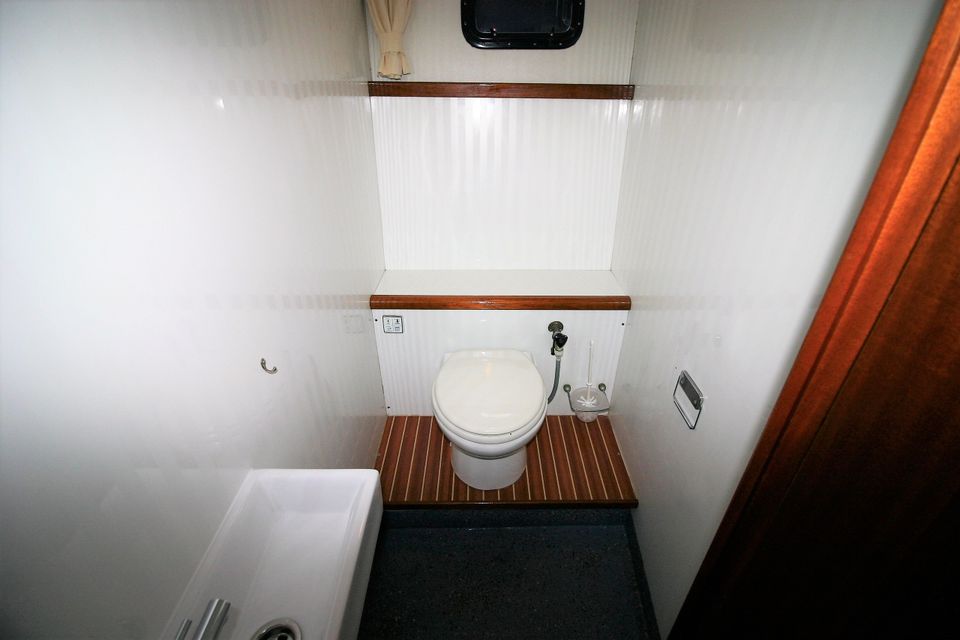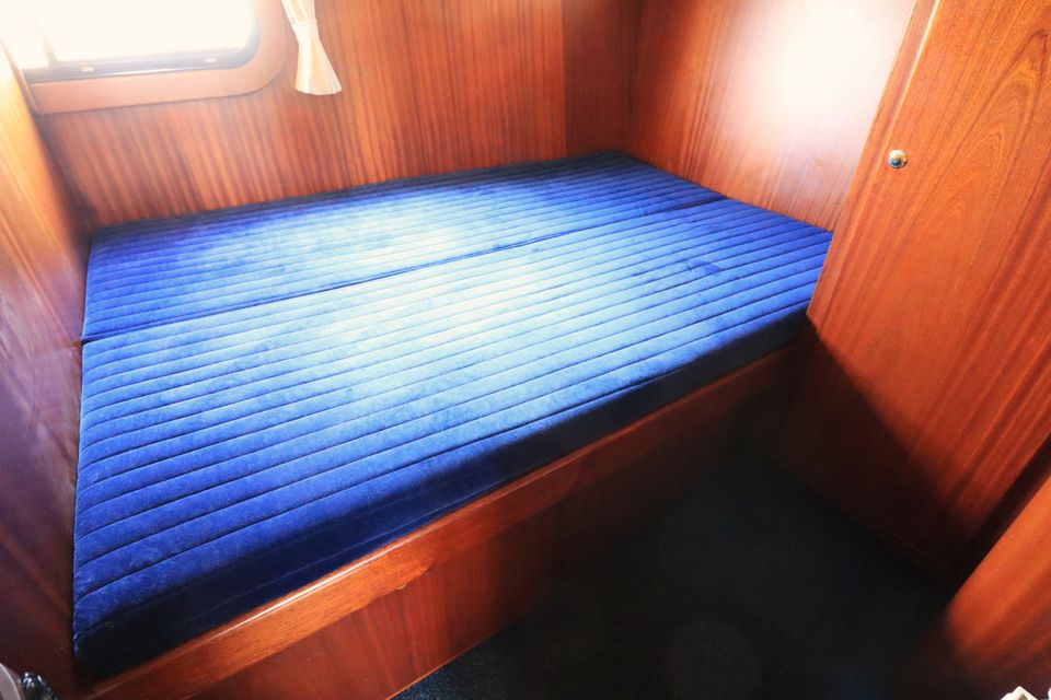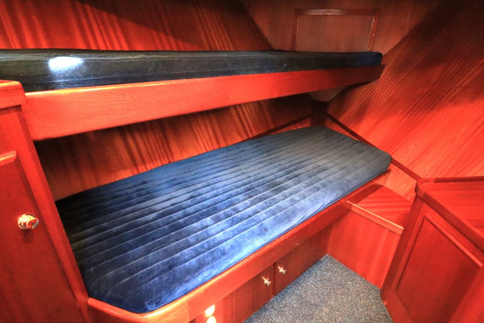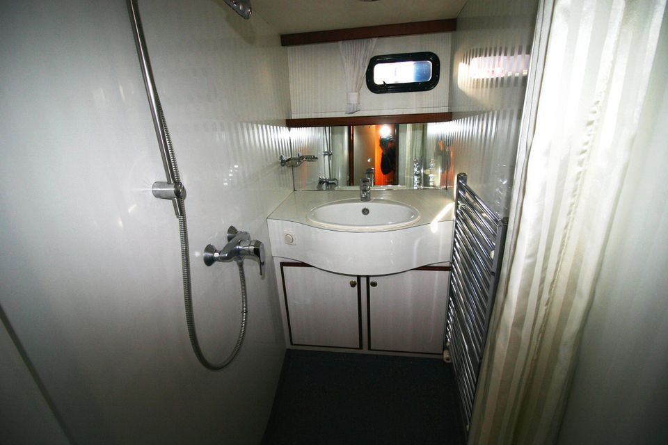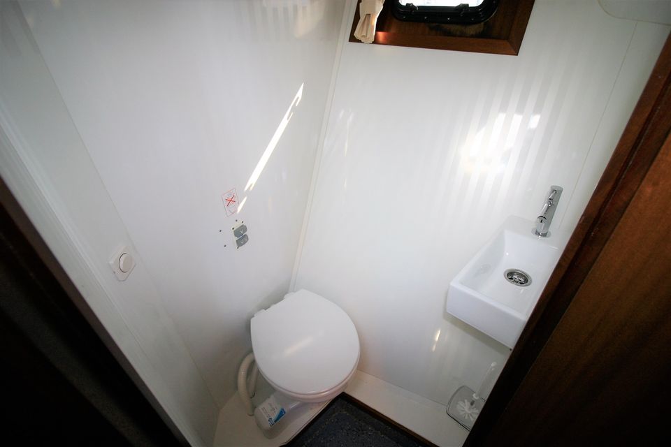 On board you will find everything you need: a refrigerator, a microwave, a TV and a good hot water supply, both inside and outside. Thanks to the double glazing in the saloon, central heating and a heated outside steering position, your stay on board is extra comfortable. The yacht has four cabins with a total of eight fixed sleeping places.