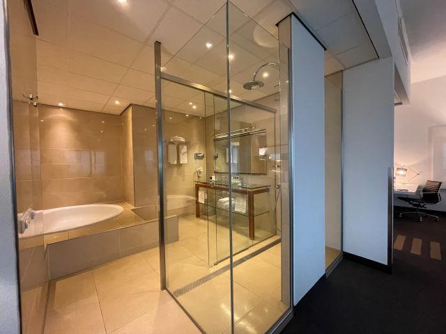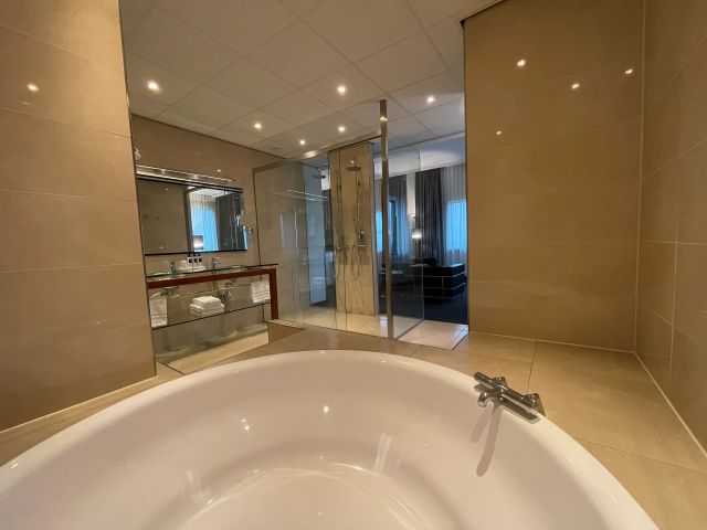 With a room name like this you guessed it already, this suite has a spectacular view over Leeuwarden. The suite is furnished with its own kitchen including an electric hob and spacious living and sleeping space. There is a large king-size double bed with TV and the living area has a comfortable sofa and armchair, also with a TV. The bathroom is spacious with a double shower, round bath and double sink, there is also a separate toilet.