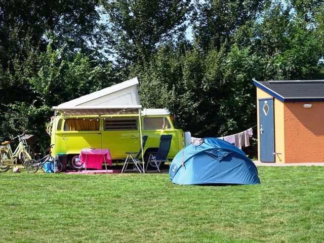 The Comfort Camping site with private sanitary facilities offers spacious camping pitches of an average of 80 m², suitable for tents, campers or trailer tents up to 6.5 metres. In addition to your camping equipment, you have your own sanitary facilities with a sink, toilet and shower, which provides extra comfort during your stay. Each pitch is equipped with 16 amps of electricity, a water and waste water connection and a digital TV connection.