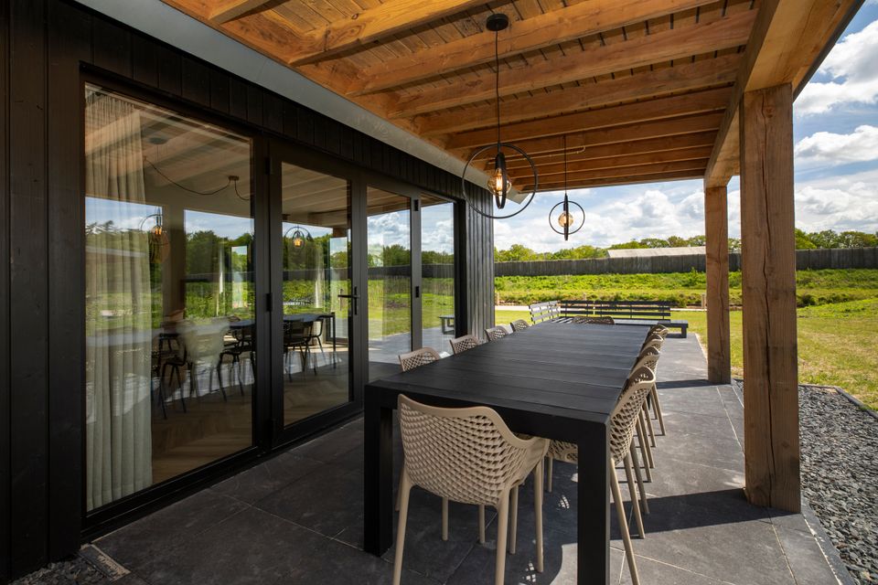 The villas have a spacious living room that overlooks the spacious garden, the water and the meadows. The furnishings are elegantly provided by interior designers. Here you will find a comfortable sitting area with smart TV and a spacious dining table. The open kitchen is part of the living room and is equipped with an oven/combi microwave, dishwasher and coffee machine. The toilet is separate at the entrance. Because the villas are owned by private owners, the furnishings and facilities in the villas differ. The whole provides a personal experience. The first floor, which can be accessed via a staircase from the hall, has 4 large double bedrooms and 2 separate luxury bathrooms. The fifth bedroom is located on the ground floor and has its own bathroom. A separate cot and high chair is available in all homes. Through the French doors in the living room you reach the garden with a lovely sunny terrace and private jetty. Here you can endlessly enjoy the peace and beautiful views. Enjoy endless summer evenings at the long garden table and make use of the BBQ.