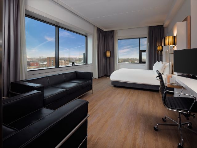 The four-star hotel is ideally located on the highways, near the historic center of Leeuwarden. The hotel has luxurious and comfortable design rooms. Many rooms have a connecting door and are therefore very suitable for families. In addition, as a guest you are guaranteed free parking next to the hotel. The hotel has various facilities with the highlight being the beautiful Restaurant élevé and Skybar on the top (11th) floor. Here you are guaranteed to enjoy a magnificent view of Leeuwarden and the surrounding area! In addition, the hotel has a spacious breakfast restaurant. There is a fitness room in the hotel, there are various meeting and event rooms. Rent a WestCord hotel bike and discover the area!