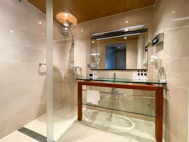The description for this room? A room with a view! You can enjoy a beautiful view of Leeuwarden from this room. The Family Room is a combination of two double rooms that are connected by a connecting door. You therefore have two sleeping areas at your disposal, one of which has a double king-size bed and the second bedroom has two single box-spring beds. There are two bathrooms, each with a bath, shower, sink and toilet.