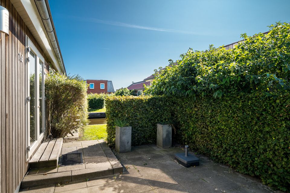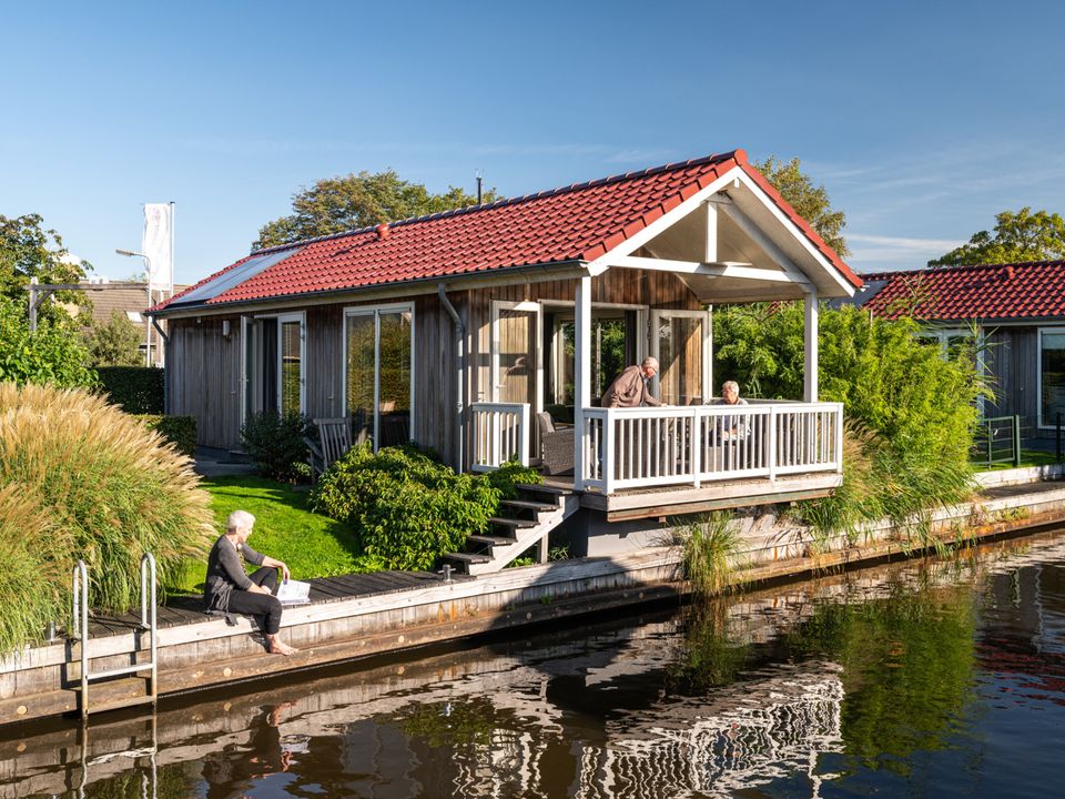 This chalet is located directly on the water and is located on a holiday park in the heart of the Frisian lakes. The chalet has a living room with sitting and dining area with open kitchen and various windows. The kitchen is equipped with a dishwasher, combination microwave, coffee maker, kettle and fridge with freezer compartment. The living room has French doors to the veranda with garden furniture. There are 2 bedrooms, each with two single beds. There is also a bathroom with a shower (cabin), sink and toilet. The house is on one level, has its own jetty and outside you can enjoy a lovely green garden.