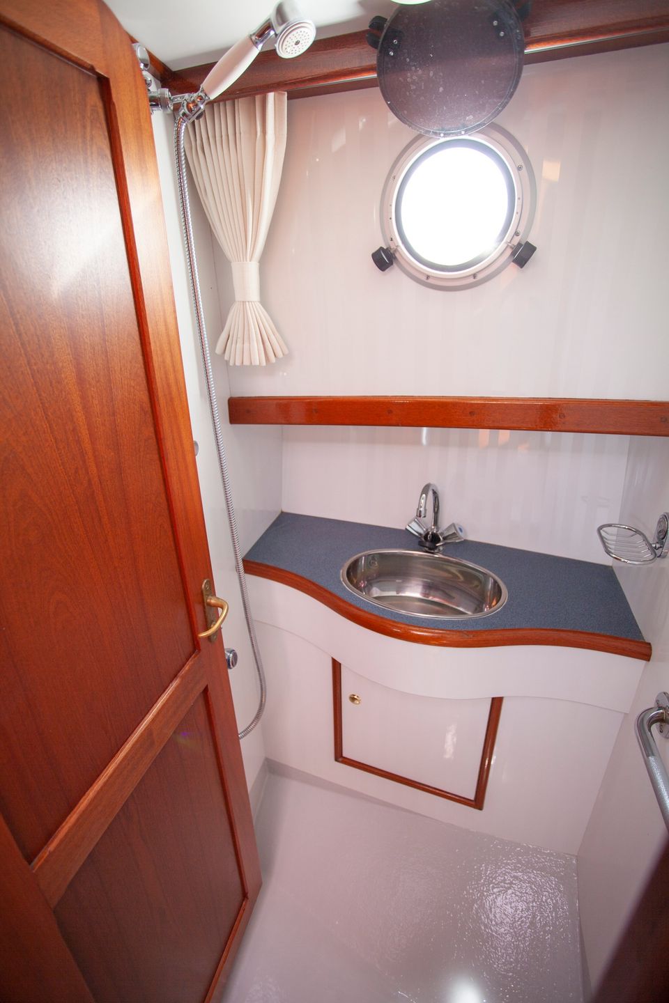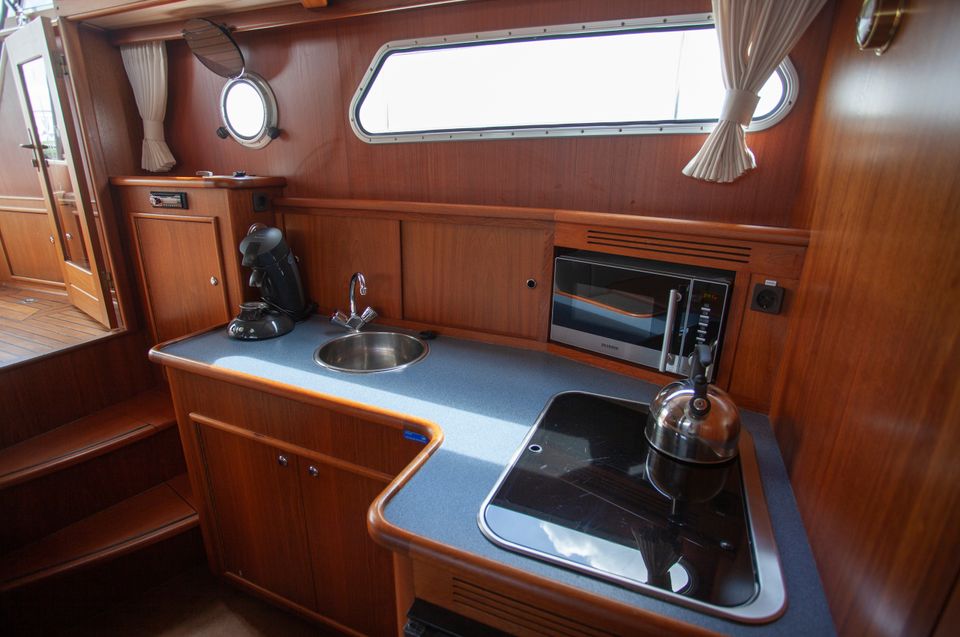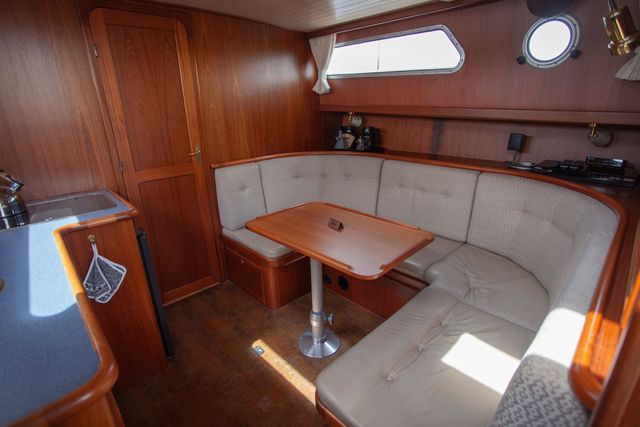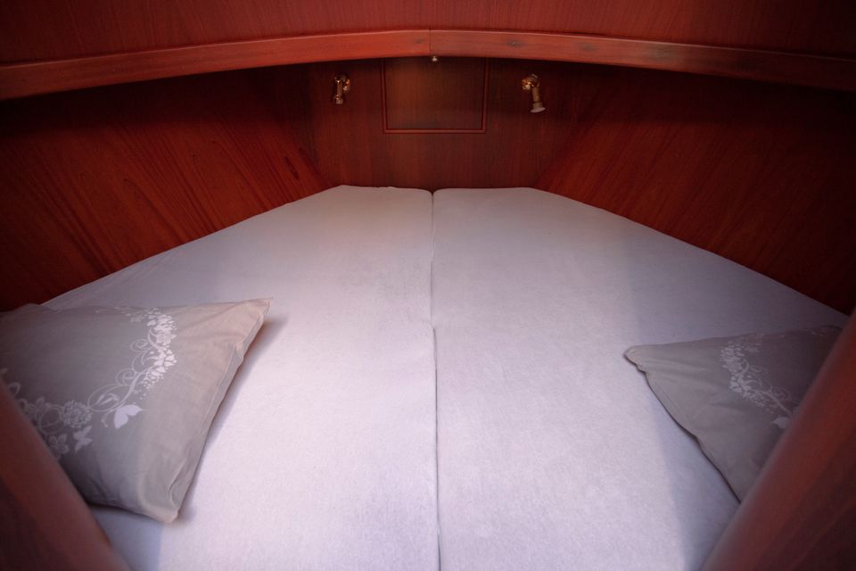 These luxurious open-cockpit boats offer a spacious and comfortable interior, perfect for two people and any guests. The saloon is stylish and bright thanks to the large windows and features a cozy seating area. The galley is fully equipped with a gas stove, refrigerator, coffee maker, and sink, making cooking on board easy. The boat has a spacious cabin and a modern head with a toilet and shower, providing additional comfort. The open cockpit is spacious and located close to the water, ensuring optimal contact with the surroundings. The variable convertible roof can be partially or fully opened for protection from sun, wind, or rain. This makes it an ideal boat for both sunny days and inclement weather. The boat is easy to maneuver and offers a luxurious and relaxing sailing experience.