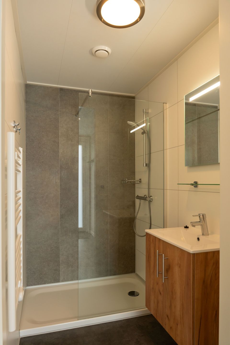 Yn 't Bosk features 2 bedrooms with comfortable box-spring beds. If you need a cot, one can be added in the living room. Additionally, you will find a bathroom with a shower and toilet, and an extra separate toilet for added convenience.