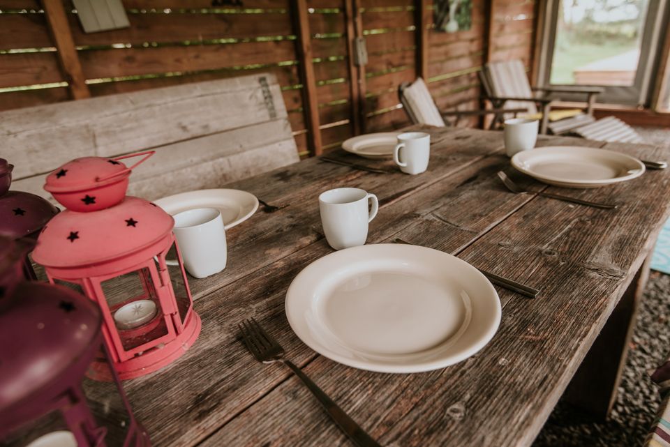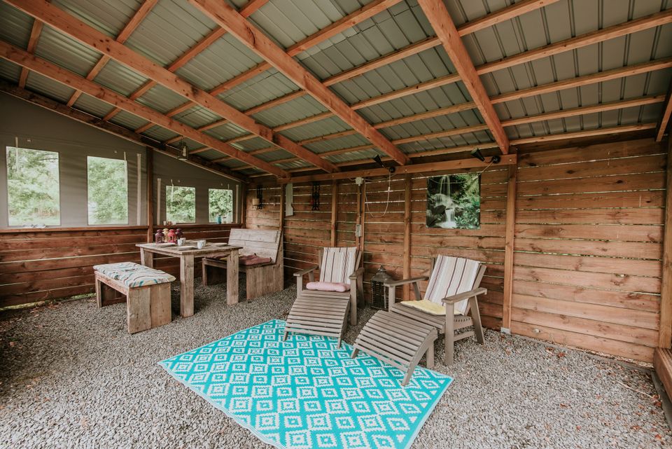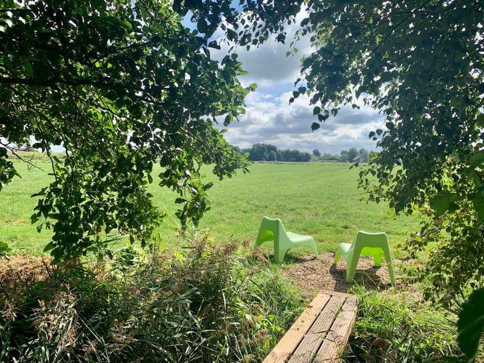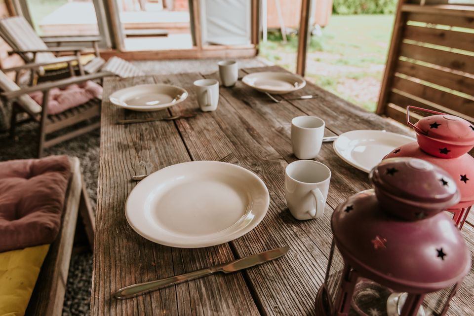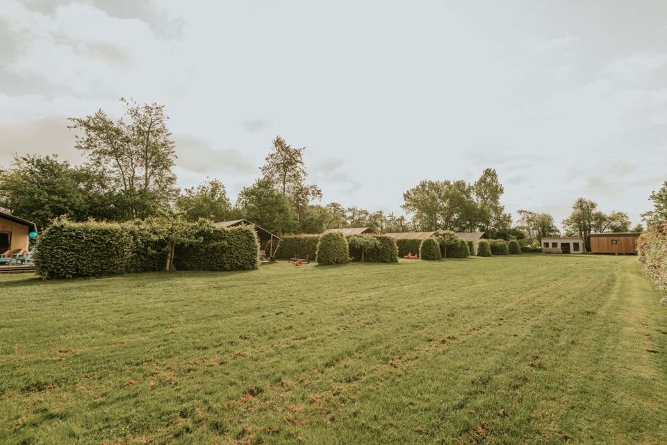 Our tiny house and tents are on the grass. Maybe you are an experienced camper, but we'll say it anyway: boots or clogs are useful to take with you because of dew on the grass early in the morning - as is something against mosquitoes if you want to go outside in the evening. to sit.