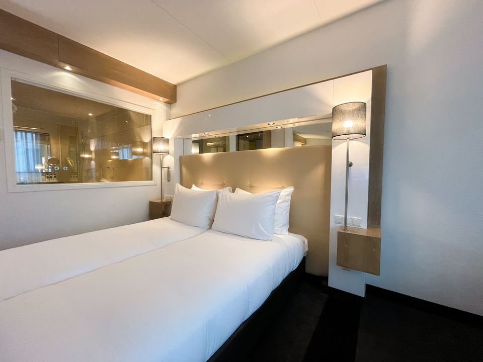 The room is spacious with two single box-spring beds and an extra large desk where you can work well. In addition, there is a lovely armchair in the room. The bathroom has a rain shower, bath, toilet and sink and, like the rest of the room, is luxurious and comfortable. Due to its location on the south side of the hotel, you have a beautiful view of Leeuwarden and the surrounding farmlands.