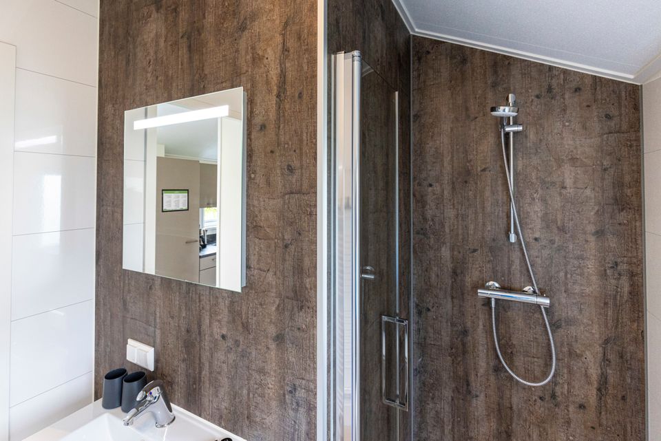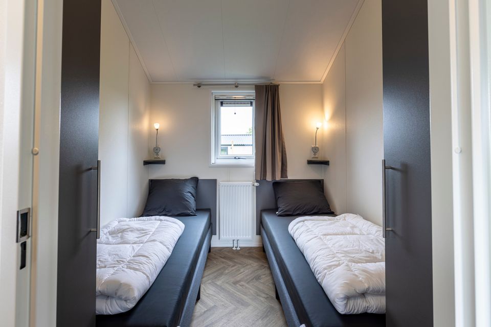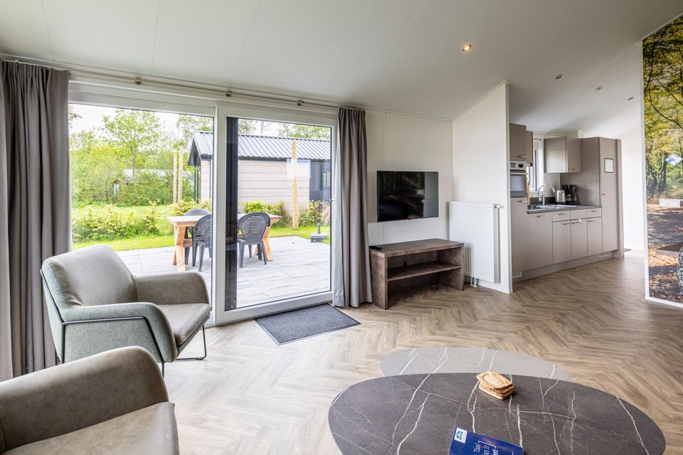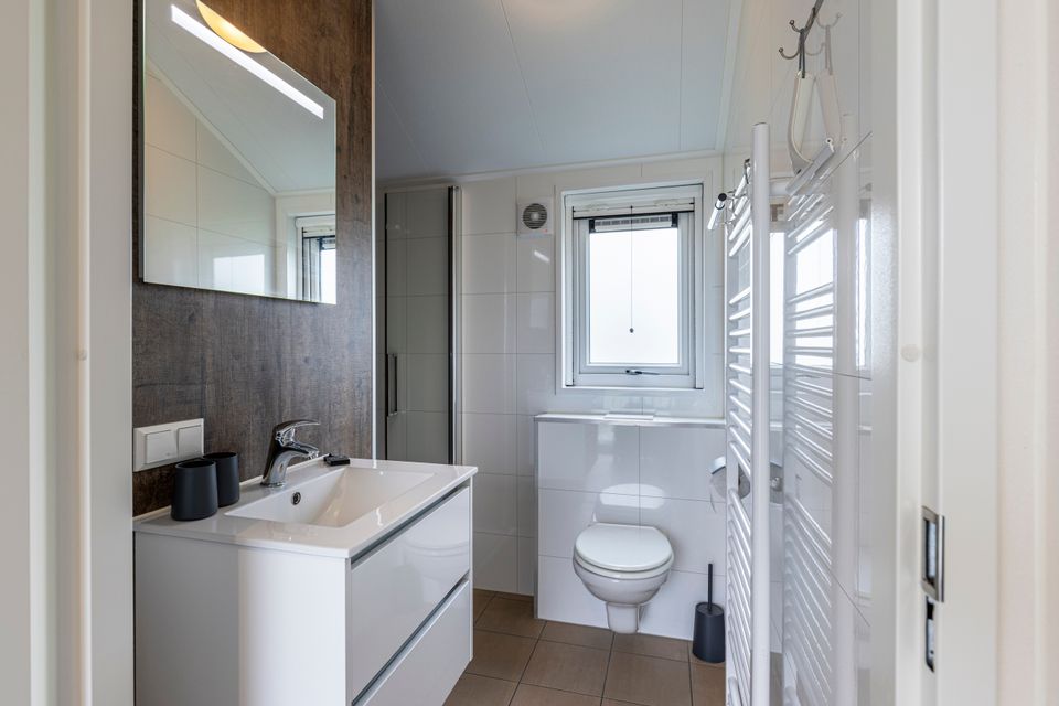 A lovely chalet with a spacious living room where the dining area is also located. In the kitchen you can cook with your company! This chalet has two bedrooms, one large bedroom and one smaller bedroom. The bathroom is equipped with a shower, a sink with sufficient storage space and a toilet. Around the chalet is a spacious garden with a terrace, there is also garden furniture so you can optimally enjoy sunny days! You can easily park your car nearby and you can walk inside via the garden.