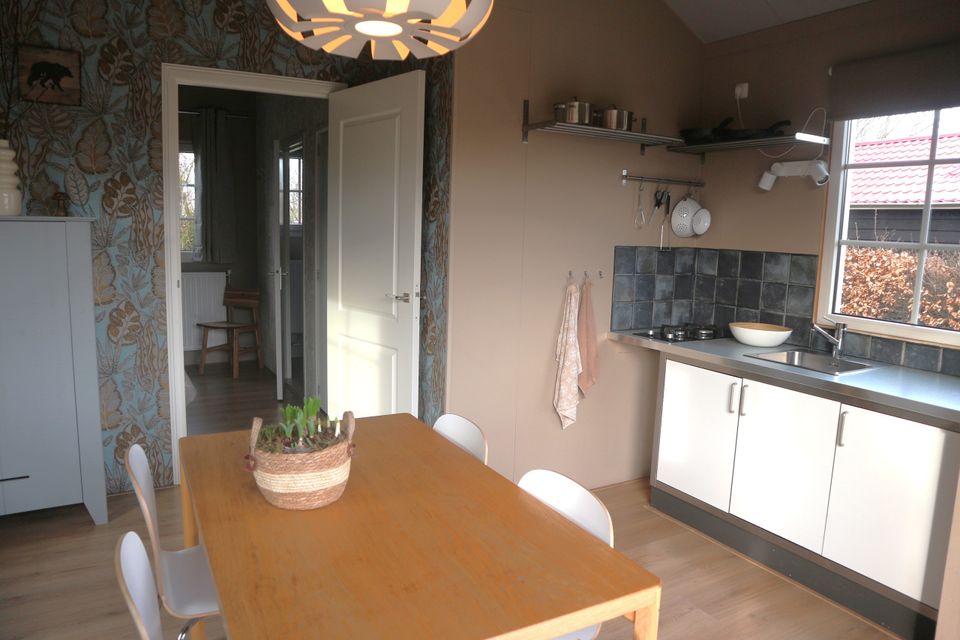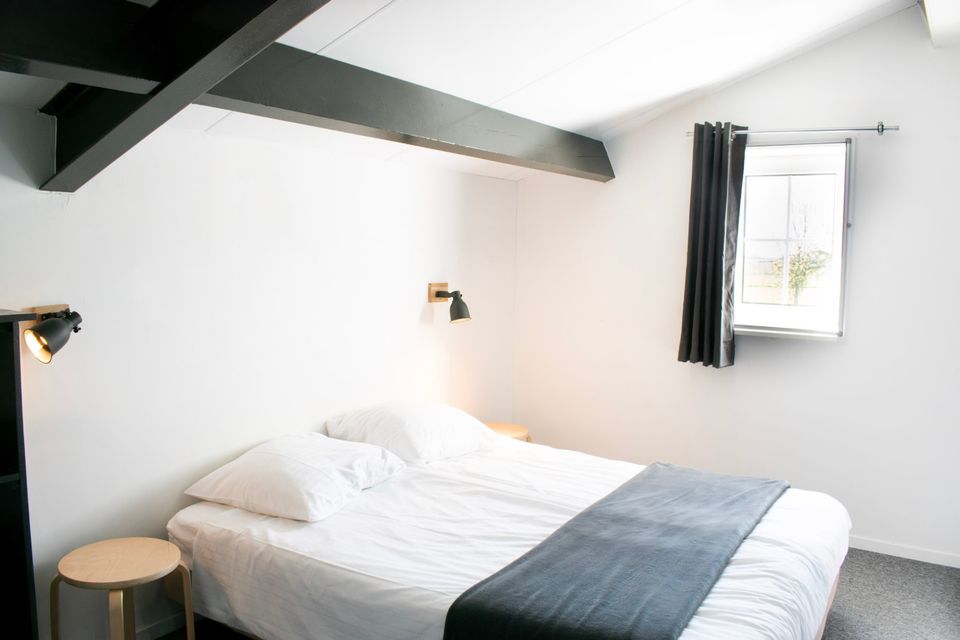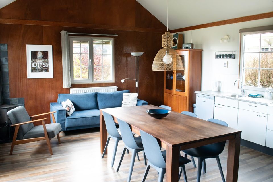 The Hofje is a unique group accommodation, because you do not all stay in a large house, but you have four wooden lodges at your disposal. The largest of these lodges is the living room lodge, in addition to sleeping places for 8 people, this lodge has a living room with a large dining table, comfortable sofas and a fully equipped kitchen. The other three lodges are opposite the living room lodge, so you are always close to each other. These lodges also have their own kitchen and sitting area and, like the living room lodge, they have central heating and an attractive wood-burning stove. For all bedrooms, each room has its own bathroom.
