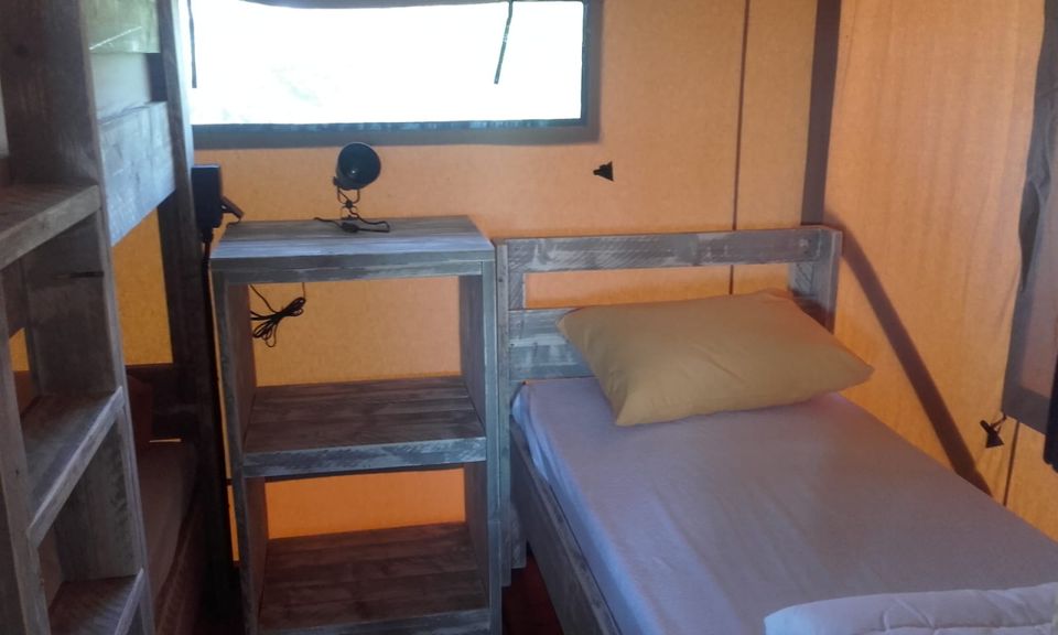 PAY ATTENTION! The tent is fully equipped for 6 people but has sleeping places for 5. If you want to come with 6 people, you can bring your own small tent for the night. You pay a surcharge for this.
