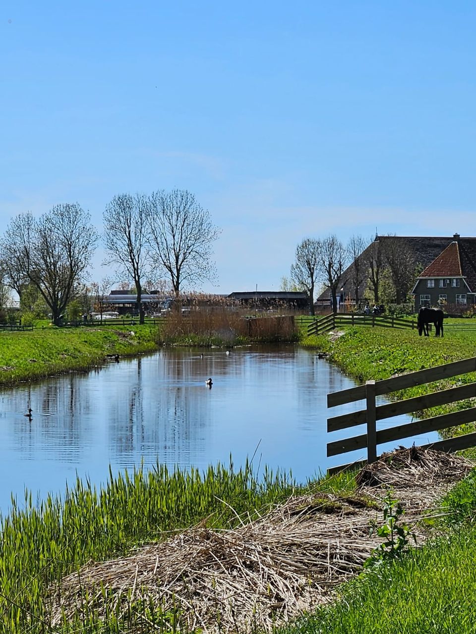 The hikers' cabins are located on the grounds of a dairy farm. Both hikers' cabins are located in the middle of nature and on the water. You therefore enjoy a beautiful view! In addition to the dairy farm, there is also a tea garden on the site, where you can enjoy a cup of coffee, tea or a pastry when the weather is nice. In addition to the cows from the dairy farm, various barn owls also nest in the farm, many geese can be seen in winter and you will be greeted by dog Billie on arrival. You are welcome to bring your own dog! In addition, there are also many other animals on the site.